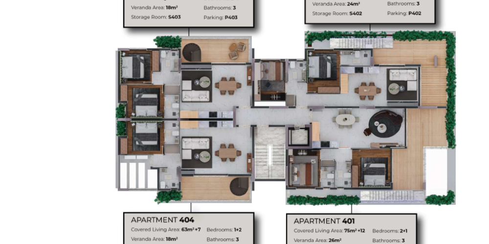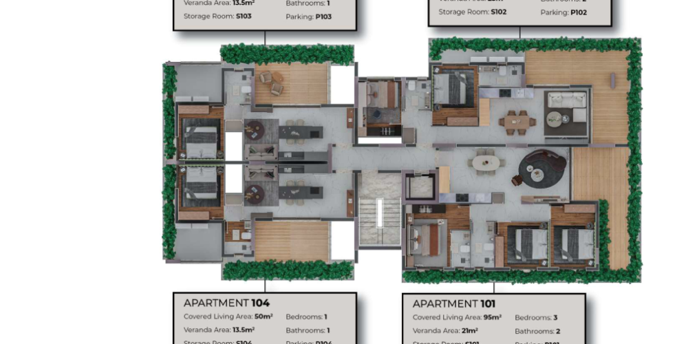 Каждая квартира оснащена современными отделочными материалами, а также имеет собственную кладовую и парковочное место.