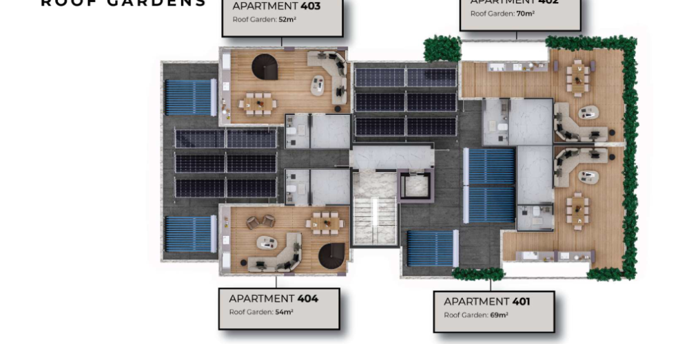 - Выход на сад на крыше для квартир на верхнем этаже