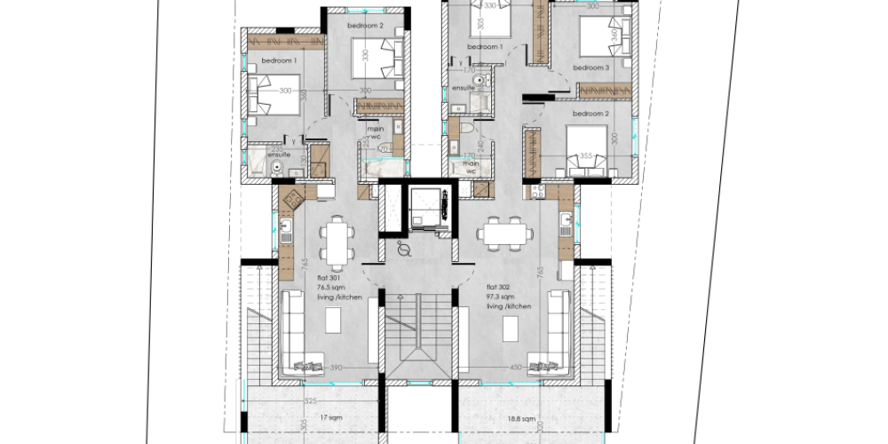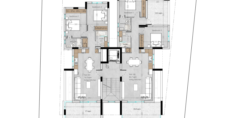 Проект разработан командой профессиональных архитекторов и инженеров с акцентом на качество и комфорт: использованы итальянские керамические покрытия, стеклянные балконы, продуманные планировки с учетом приватности и эффективного использования пространства. Для повышения энергоэффективности в доме будет установлена фотогальваническая система с возможностью учета произведенной энергии (net metering), что позволит значительно снизить затраты на электроэнергию.