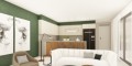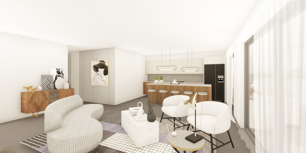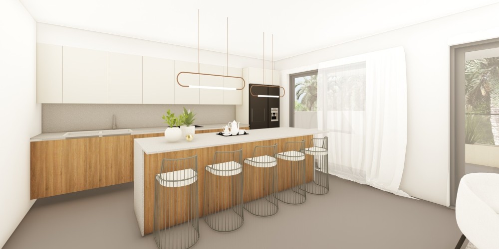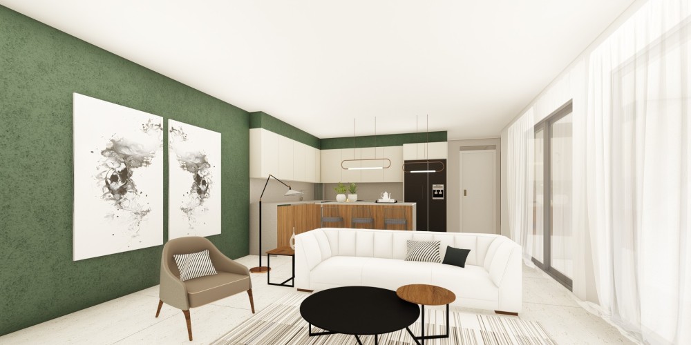 Каждая квартира спроектирована с кухней открытого типа и передаётся без мебели, что позволяет жильцам обустроить пространство по своему вкусу. Для каждой единицы предусмотрено одно парковочное место и отдельное кладовое помещение. Крытые веранды создают дополнительное пространство для отдыха на свежем воздухе. Здание оснащено лифтом, обеспечивающим удобный доступ ко всем этажам.