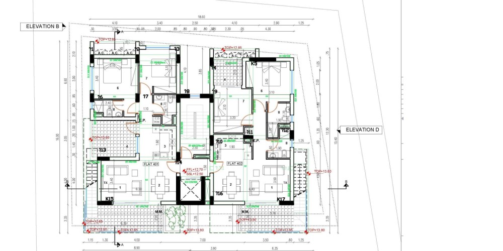 Здание состоит из 8 просторных квартир с большими верандами, кладовой и крытой парковкой. Итальянская кухня и гранитная столешница, а здание может быть полностью оборудовано умными технологиями.