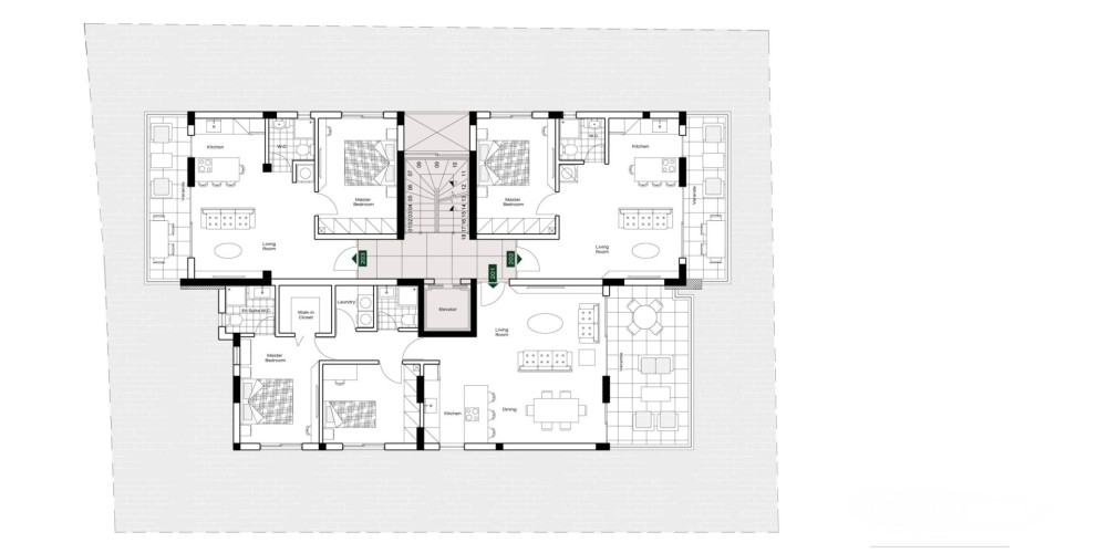 Архитектура проекта ориентирована на практичные планировки, обеспечивающие комфортную городскую жизнь. Каждая квартира оснащена элементами «умного дома» и отделана качественными материалами, такими как паркет из ореха, керамическая плитка и гранитные поверхности. Пространства спроектированы с учетом функциональности и визуальной выразительности.