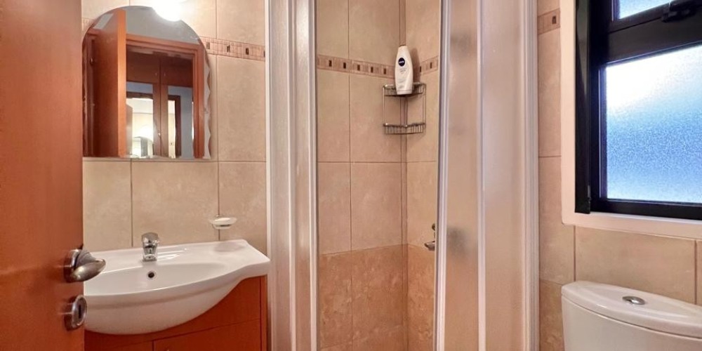 Общая крытая площадь виллы составляет около 160 м², дополнительно предусмотрено примерно 30 м² балконов. Планировка включает отдельную кухню, гостиную, одну ванную комнату, две душевые, гостевой санузел, а также душ на открытом воздухе. Вилла оборудована системой отопления на дизельном топливе.