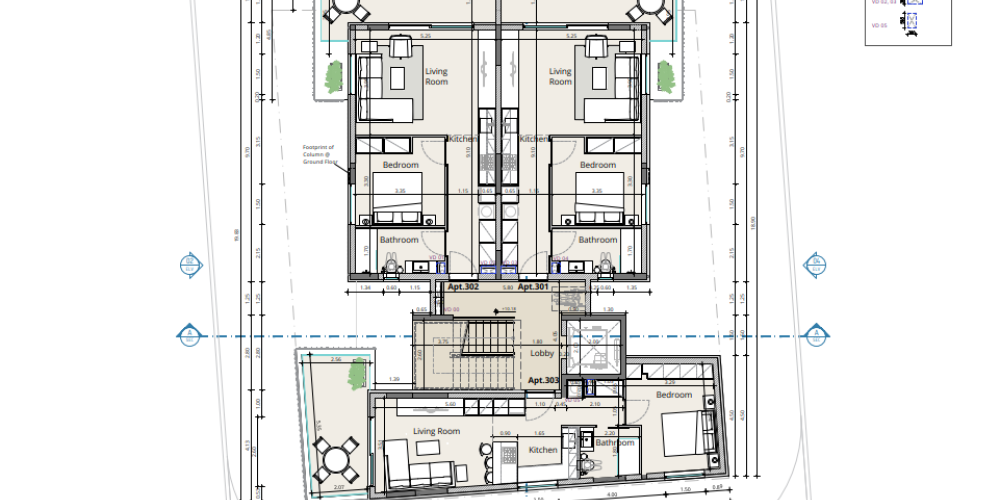 На первых двух этажах расположены по две квартиры с одной спальней. Каждая включает открытую кухню, совмещенную с гостиной, полноценную ванную комнату и собственный балкон. Эти квартиры подойдут для комфортного проживания одного или двух человек.