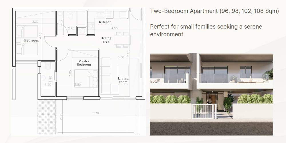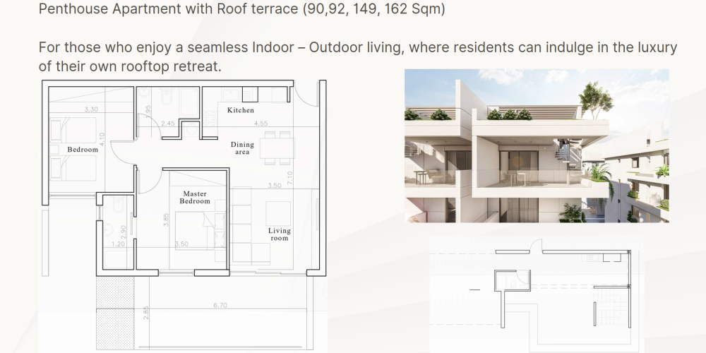Жилой комплекс состоит из пяти малоэтажных зданий с лаконичной архитектурой и акцентом на практичность. Проект расположен в развивающемся районе Ларнаки и обеспечивает удобный доступ к городским удобствам, учебным заведениям, пляжам и новой марине.