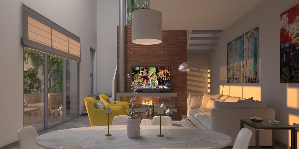 Каждый дом построен в два уровня и включает три спальни и три ванных комнаты, при этом главная спальня имеет отдельный санузел. Отделку интерьера, включая кухню, можно выбрать по своему вкусу. В домах установлены видеодомофон, камеры видеонаблюдения и охранная сигнализация. В планировке предусмотрены две крытые веранды, два крытых парковочных места, а также отдельное помещение для хранения и бойлерная.