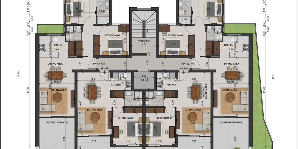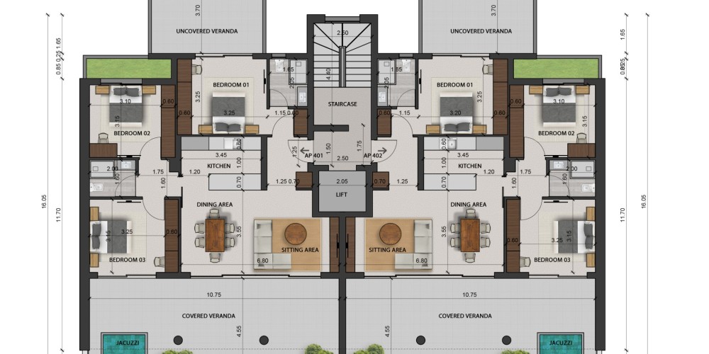 Проект включает всего 14 квартир: апартаменты с одной и двумя спальнями, а также пентхаус с тремя спальнями. Каждое жильё спроектировано с акцентом на функциональность и современные архитектурные решения — с чёткими линиями и продуманными планировками.