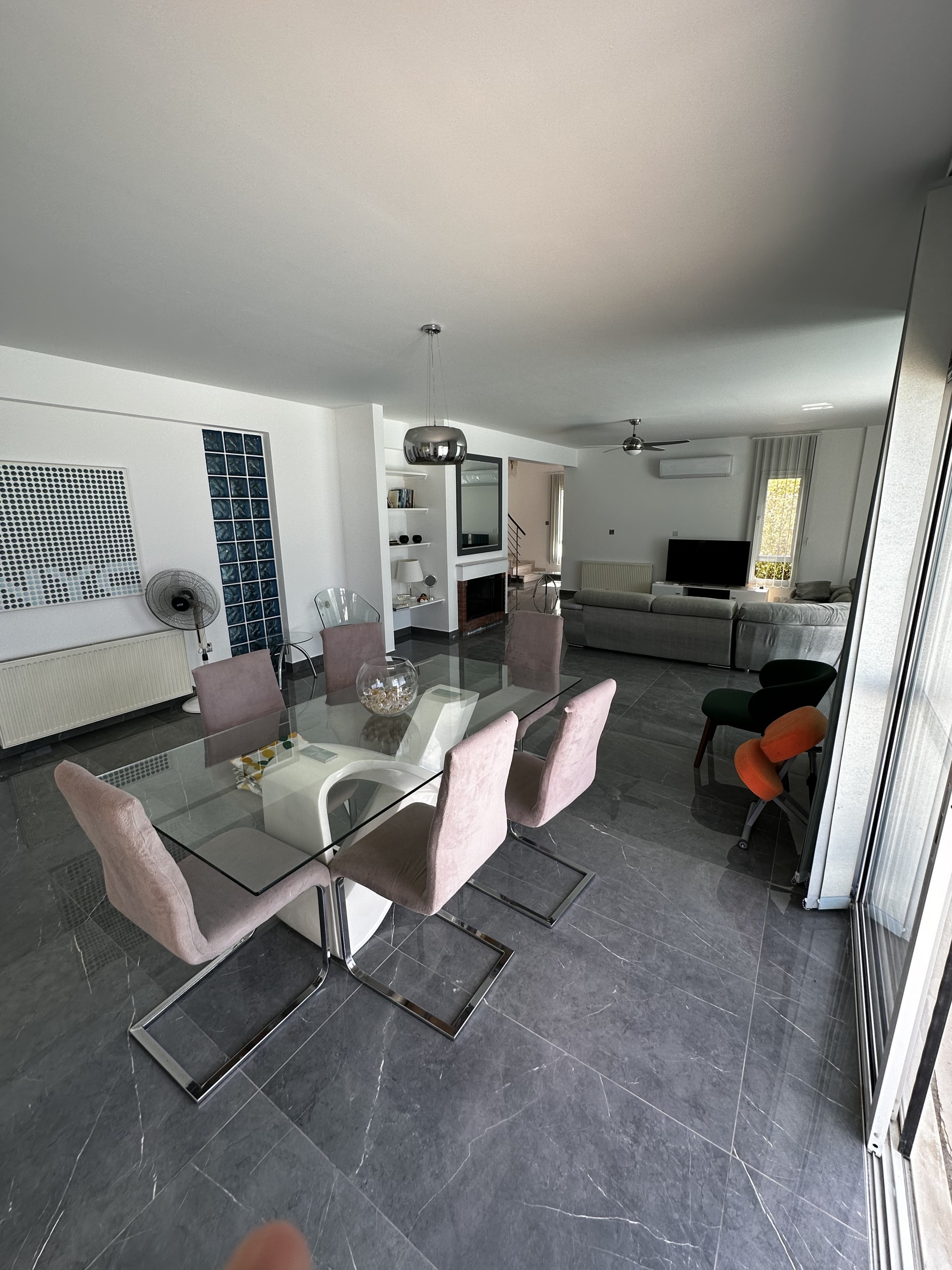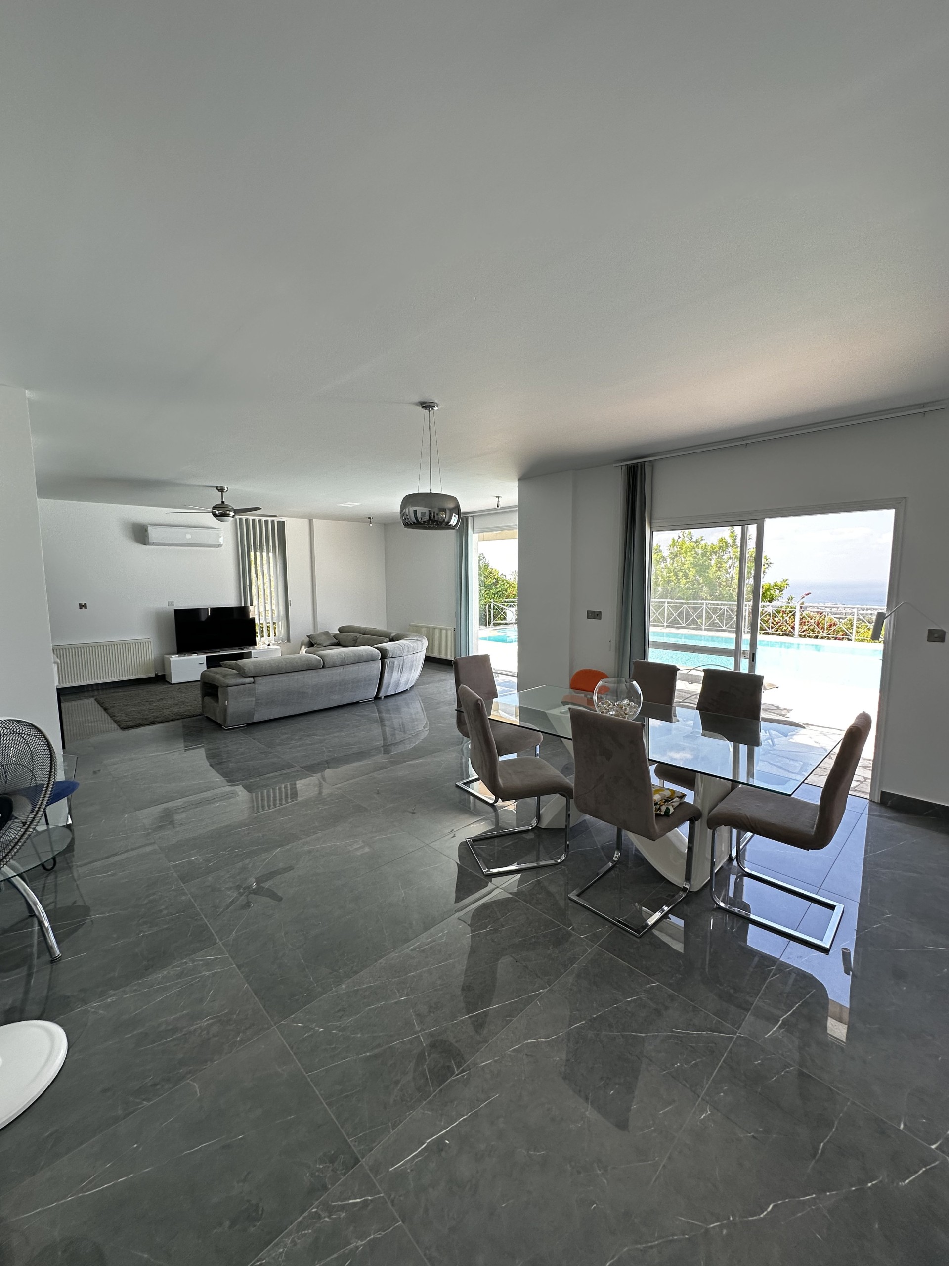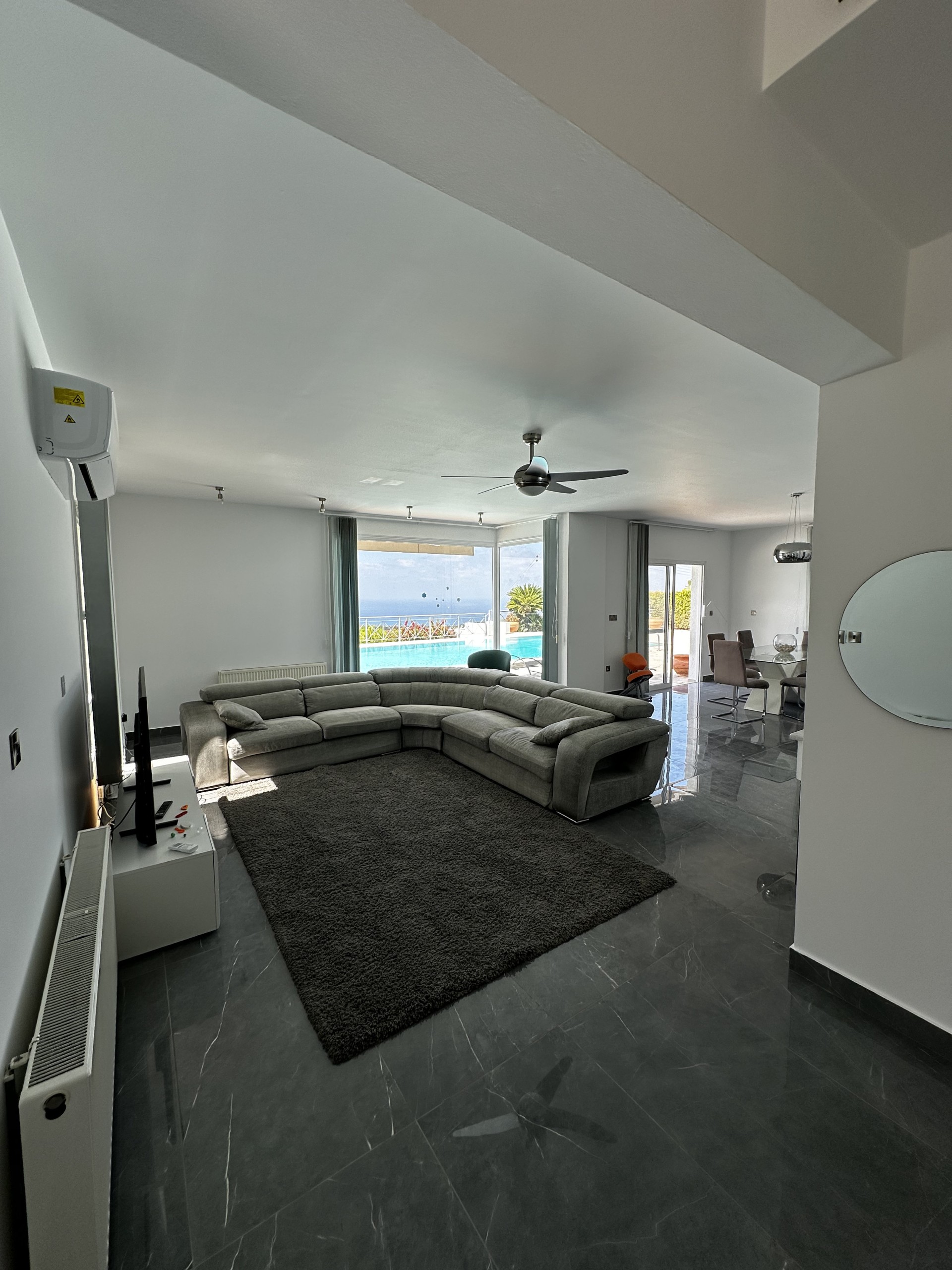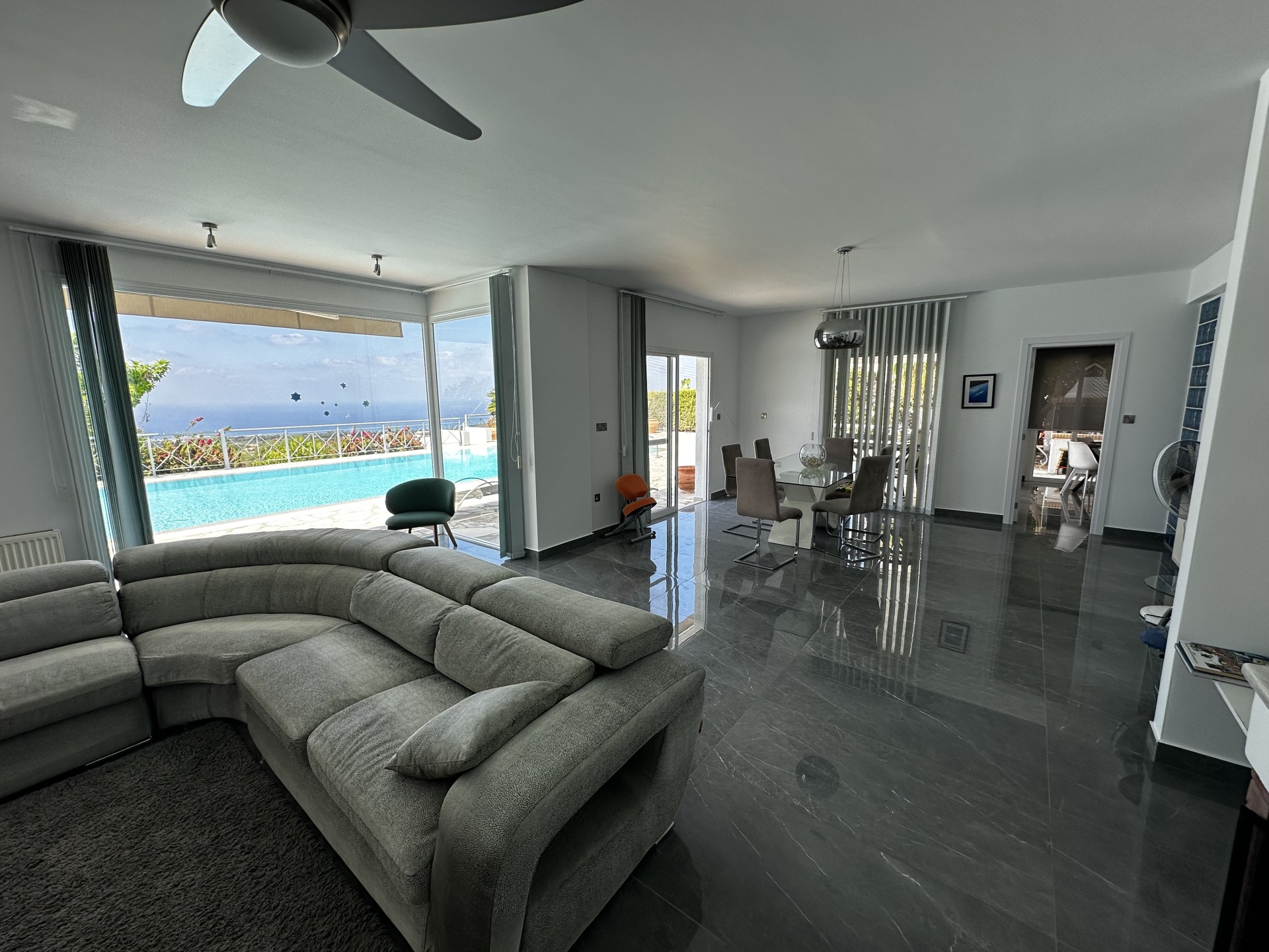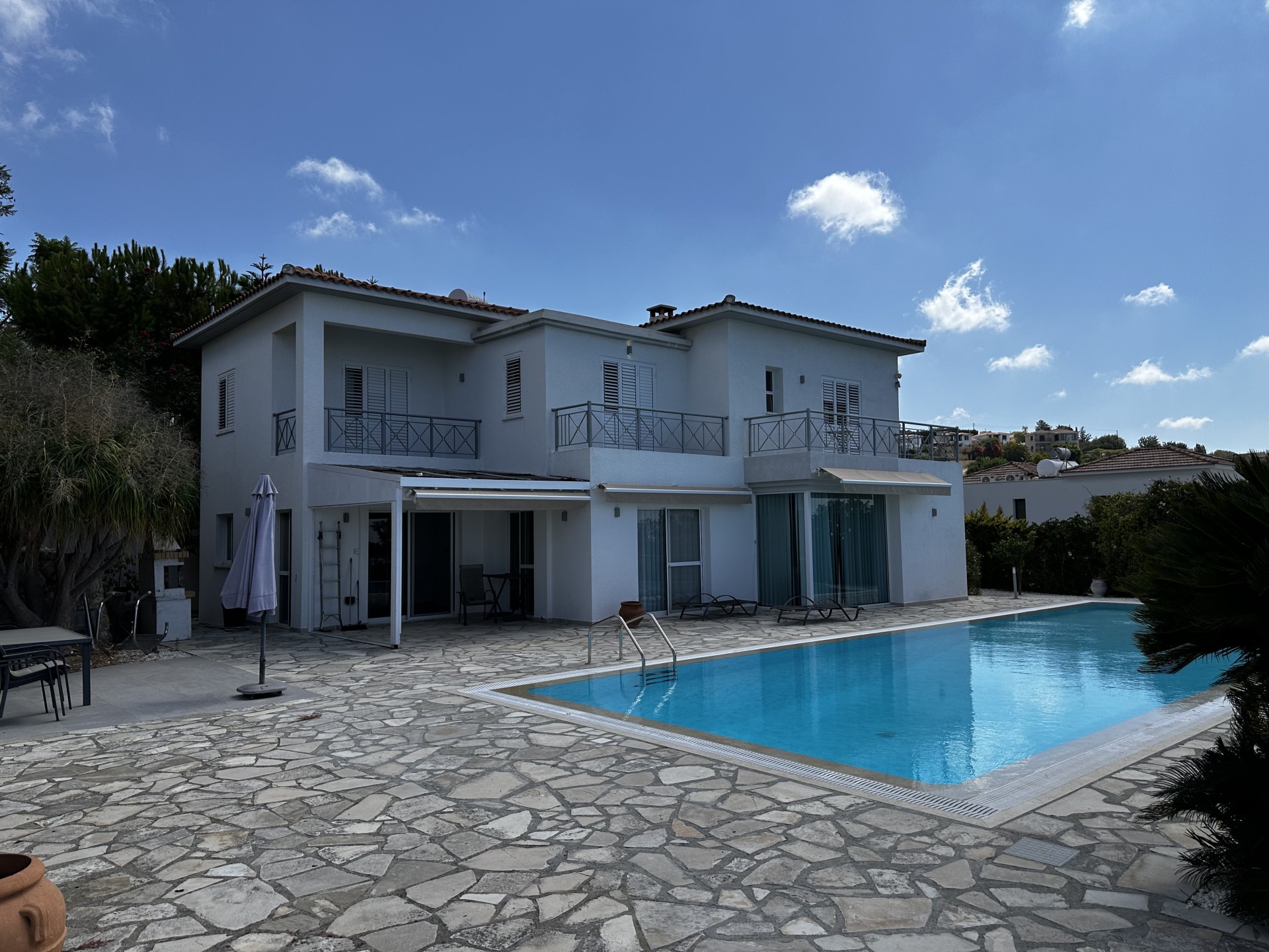 Дом спроектирован для максимального комфорта: центральное отопление, кондиционирование воздуха, камин, окна с двойным остеклением, ставни и москитные сетки. Современная кухня с гранитными рабочими поверхностями сочетает практичность и стиль. Внешние пространства включают крытые и открытые веранды, а возвышенное расположение обеспечивает красивые виды на море.