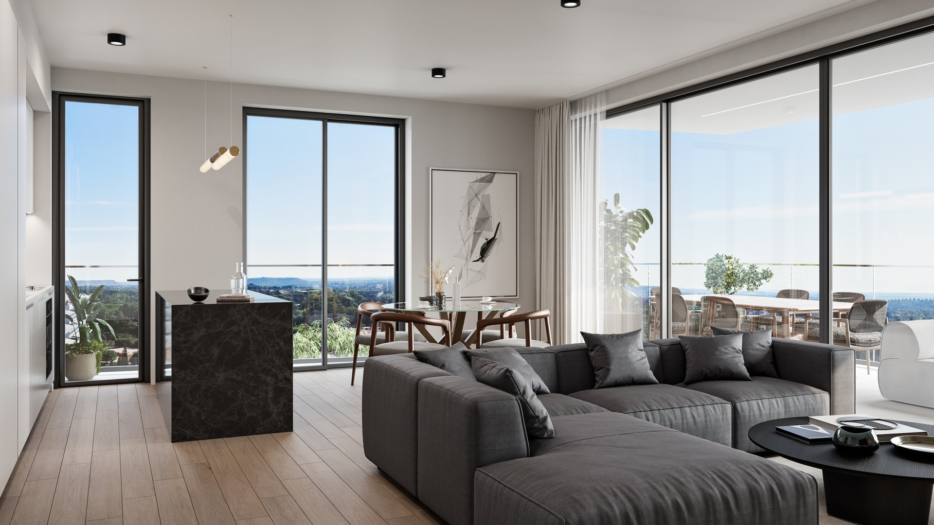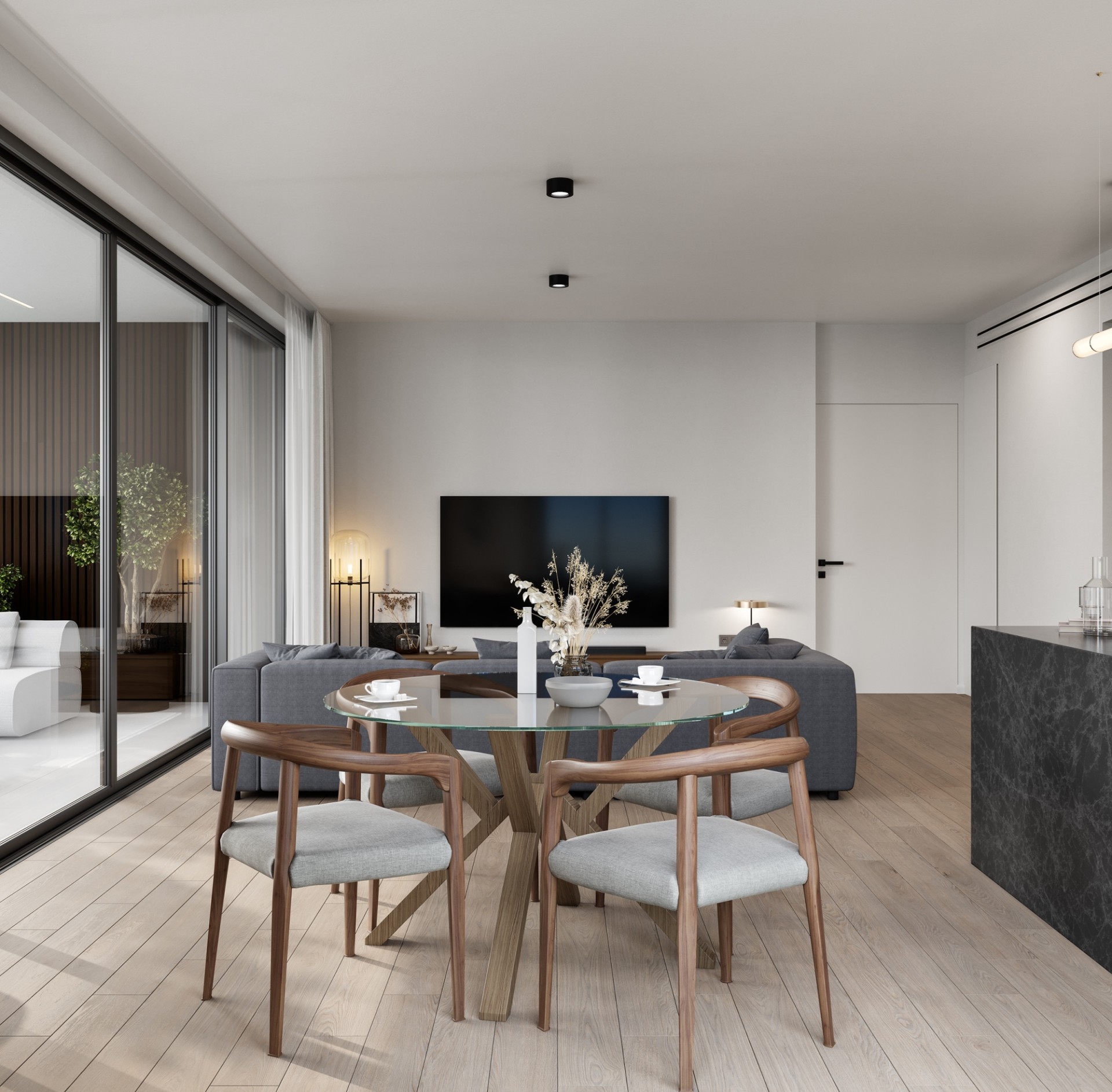 •Скрытые блоки кондиционирования в гостиной, кухне и столовой