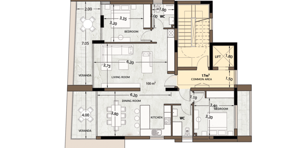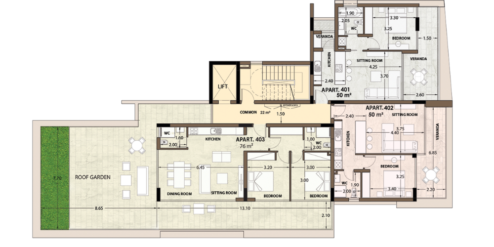 Современный жилой комплекс предлагает 18 стильных апартаментов площадью от 65 до 178 м². Каждая квартира продумана до мелочей: высококлассный интерьер, просторные гостиные, современные ванные комнаты и обилие естественного света. В комплексе установлена солнечная энергосистема, а также предусмотрено проживание с домашними животными. Расположенный в тихом тупике, объект обеспечивает лёгкий доступ к различным удобствам, включая MyMall, гольф-клуб Limassol Greens, City of Dreams Casino, Лимассольскую марину, супермаркеты, банки и аквапарк Fasouri, всё в пределах короткой поездки. Проект сочетает современный комфорт с гармоничным и спокойным соединением с природой.