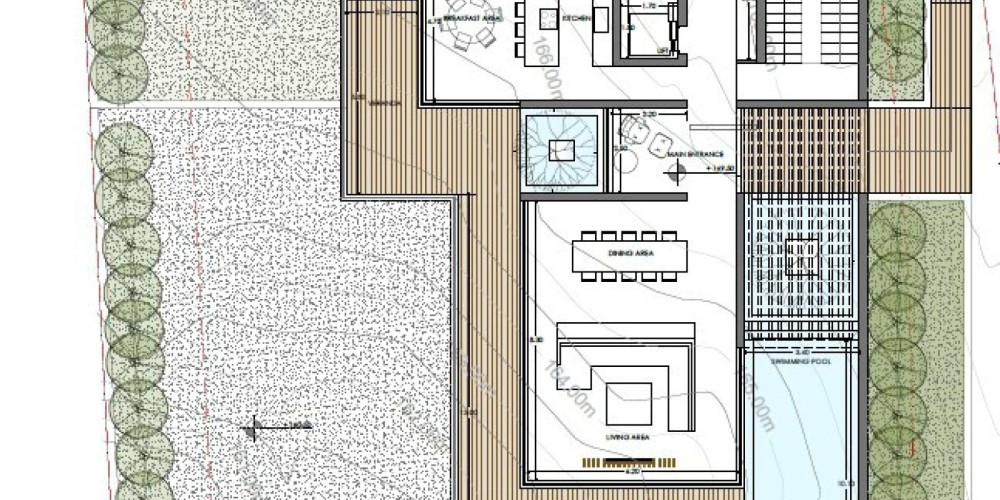 Эта эксклюзивная трёхуровневая резиденция выделяется современным авторским дизайном с чёткими линиями, открытыми пространствами и обилием естественного света. На верхнем уровне расположены кухня, столовая и гостиная зона, гостевая спальня, прачечная, гостевой санузел с гардеробом, парковка и лифт — все помещения имеют прямой выход на крытые веранды площадью 68 м² и к бассейну. На нижнем уровне находится лаунж-зона с гостиной и обеденной частью, три спальни с ванными комнатами, включая мастер-спальню с просторной гардеробной, а также крытые веранды площадью 79 м² с видом на сад и горы. Вилла также включает тренажёрный зал, джакузи, сауну и обеспечивает полный комфорт и уединение, предлагая при этом панорамные виды на Средиземное море.