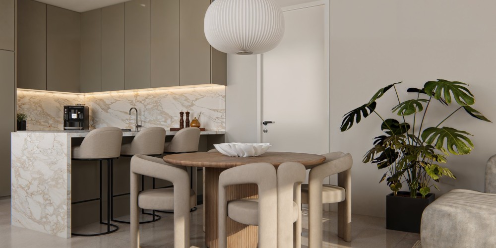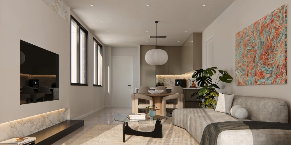 Каждая квартира отличается продуманной планировкой и просторными внутренними помещениями площадью от 66 до 86 м², а также крытыми верандами до 27 м². Большие окна наполняют интерьер естественным светом, а пентхаусы на верхнем этаже располагают частными садами на крыше с уютными зонами отдыха и приятными видами. Элегантная отделка, эргономичный дизайн и минималистичный характер создают атмосферу современного и гармоничного жилья.