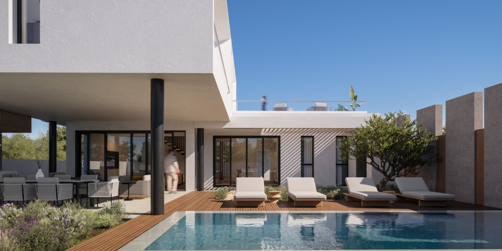 На просторном участке расположены частный бассейн с системой overflow, благоустроенный сад, крытая парковка и зона барбекю, что создаёт комфортные условия для отдыха и развлечений. Высококачественные отделочные материалы, алюминиевые оконные рамы и возможность индивидуальной настройки отдельных элементов повышают привлекательность объекта. Благодаря расположению в шаговой доступности от основных инфраструктурных удобств вилла представляет собой отличный вариант для комфортного проживания недалеко от ключевых объектов и пляжей Ларнаки.