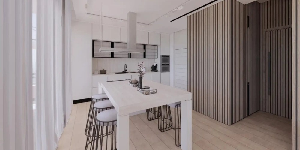 Эта вилла расположена на тихом холме в районе Пантhea и предлагает панорамные виды на море, высокий уровень приватности и спокойную среду. Планировка открытого типа максимально использует естественное освещение, формируя просторные гостиные и обеденные зоны, которые плавно переходят в открытые площадки. В резиденции предусмотрена современная кухня с качественной отделкой, а также терраса с инфинити-бассейном, откуда открываются виды на окружающий ландшафт.