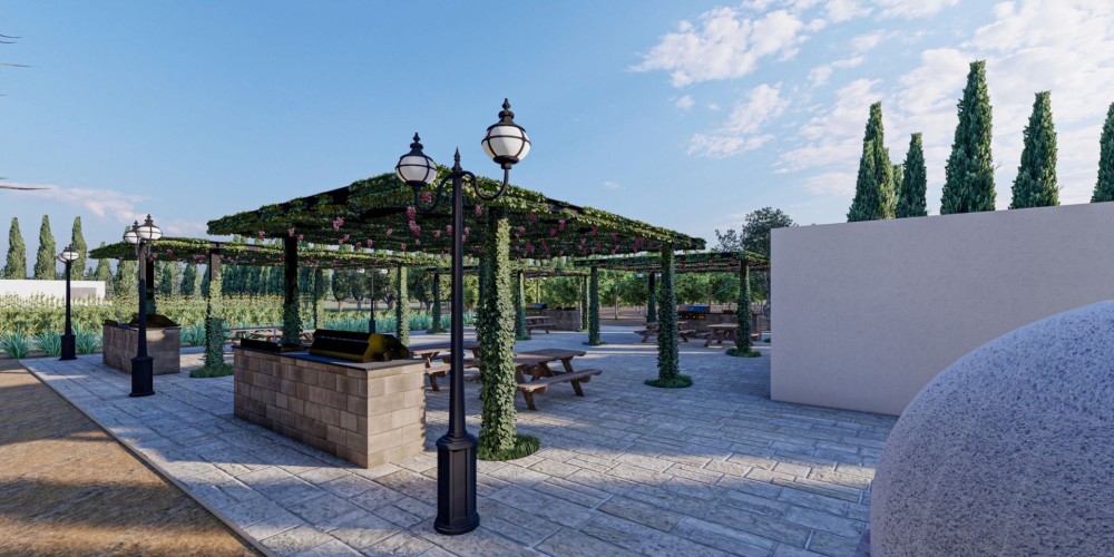 Каждая вилла дополнена приватными ландшафтными садами, бассейном с наружным душем и внешними элементами, такими как отдельная котельная, уличная кухонная стойка или бар и пергола. Крытая веранда объединяет внутренние и внешние пространства, создавая плавный переход для отдыха и приёма гостей. Проект расположен рядом с общественной зелёной зоной, что усиливает ощущение природного окружения и спокойствия.
