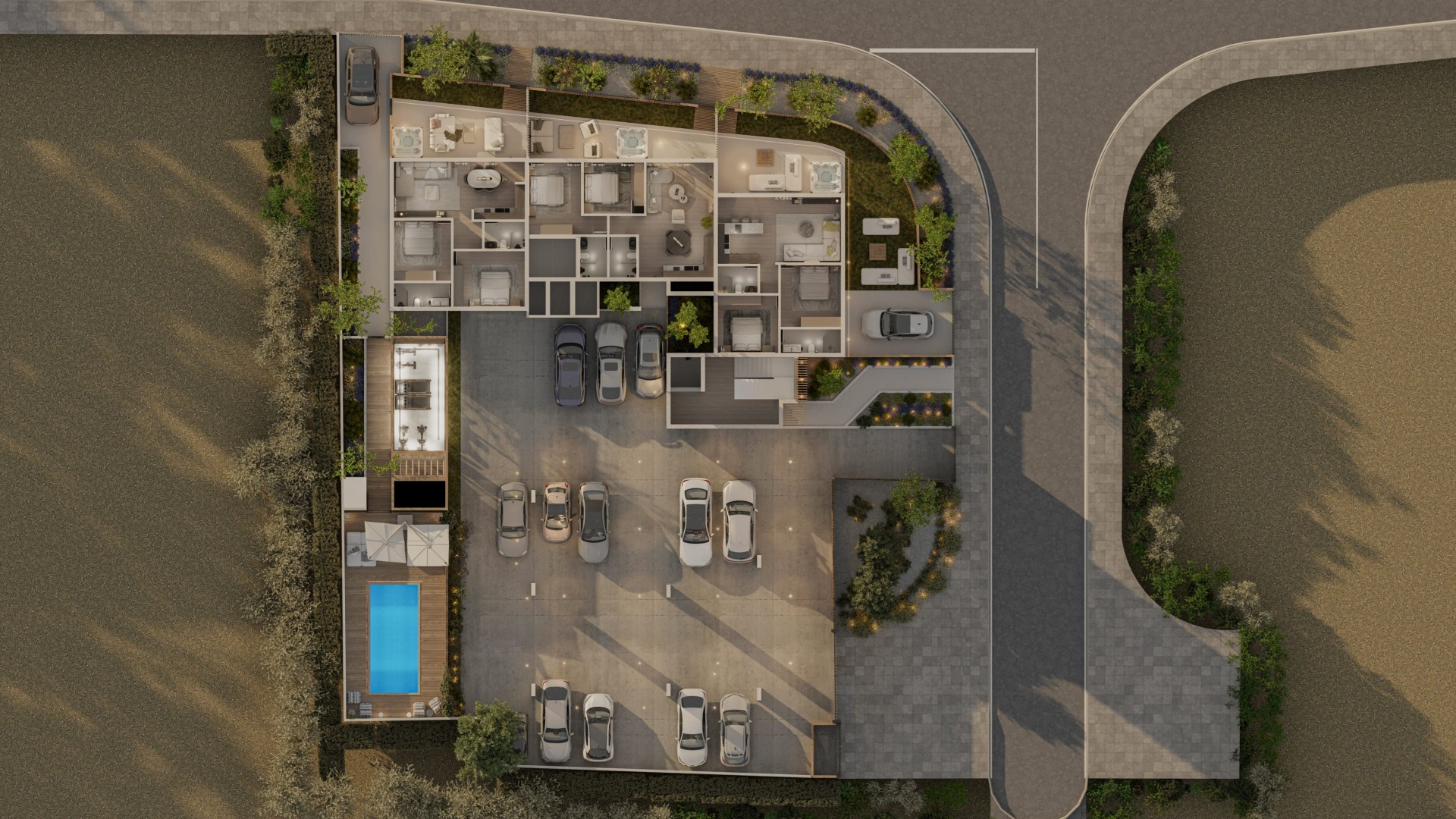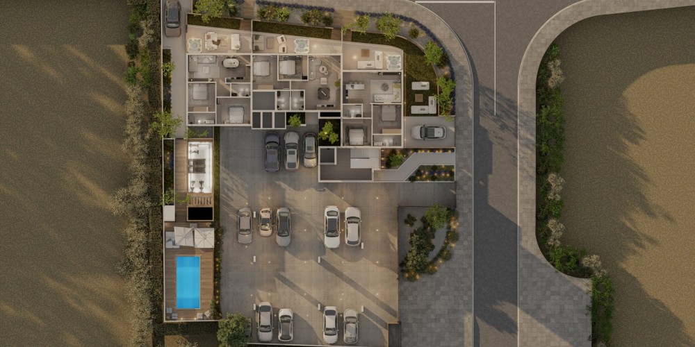 Этот жилой проект расположен в районе Камарес города Ларнака и представляет собой ограниченную коллекцию апартаментов с одной и двумя спальнями, созданных для комфортной современной городской жизни. В здании всего 16 резиденций, включая три эксклюзивных таунхауса на первом этаже с частными садовыми террасами и встроенными джакузи. Архитектурная концепция делает акцент на пространстве и естественном освещении: высокие потолки, панорамные окна от пола до потолка и тщательно подобранные дизайнерские отделочные материалы формируют гармоничную и элегантную жилую среду.