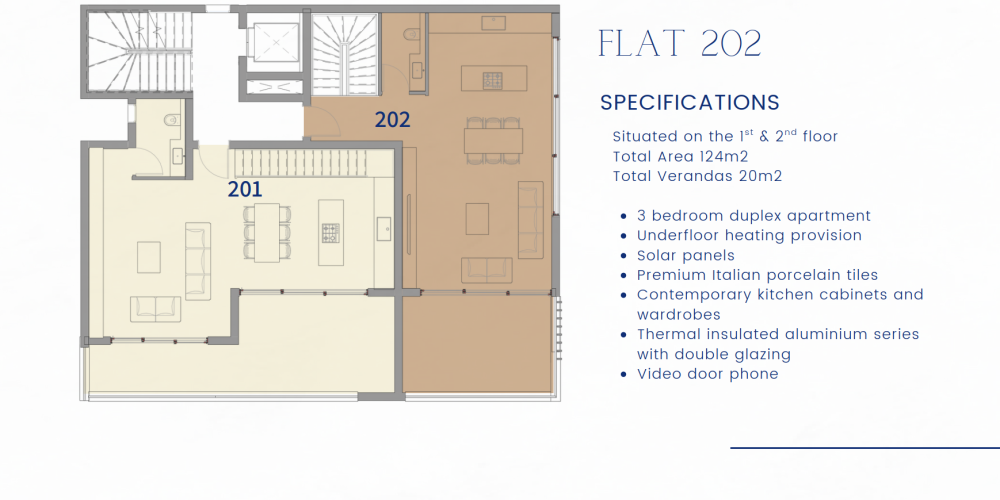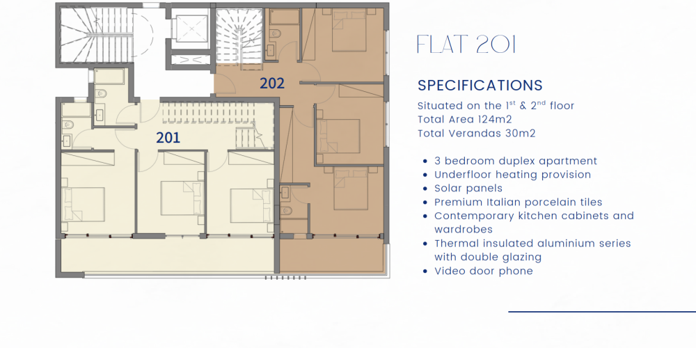 На первом и втором этажах расположены дуплекс-апартаменты с тремя спальнями, отличающиеся сбалансированными внутренними планировками, подходящими для комфортного повседневного проживания. Третий этаж полностью отведён под просторный пентхаус с тремя спальнями, дополнительной служебной спальней и частной террасой на крыше. Открытая планировка объединяет зоны гостиной, столовой и кухни, создавая плавное и функциональное пространство. Высококачественная отделка, современная мебель и тщательно подобранные световые решения подчёркивают общий стиль интерьеров.