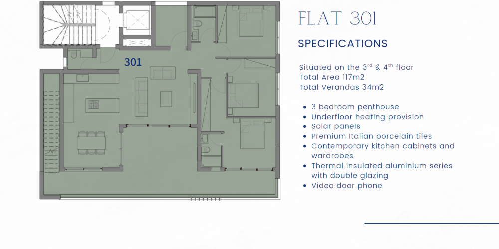 Частная терраса на крыше является одной из ключевых особенностей проекта, предлагая панорамные виды на городской пейзаж и море. Возвышенное расположение создаёт идеальные условия для отдыха и использования открытого пространства. Локация обеспечивает удобный доступ к повседневной инфраструктуре и основным городским объектам, формируя комфортный и хорошо связанный образ жизни в одном из наиболее востребованных жилых районов Лимассола.