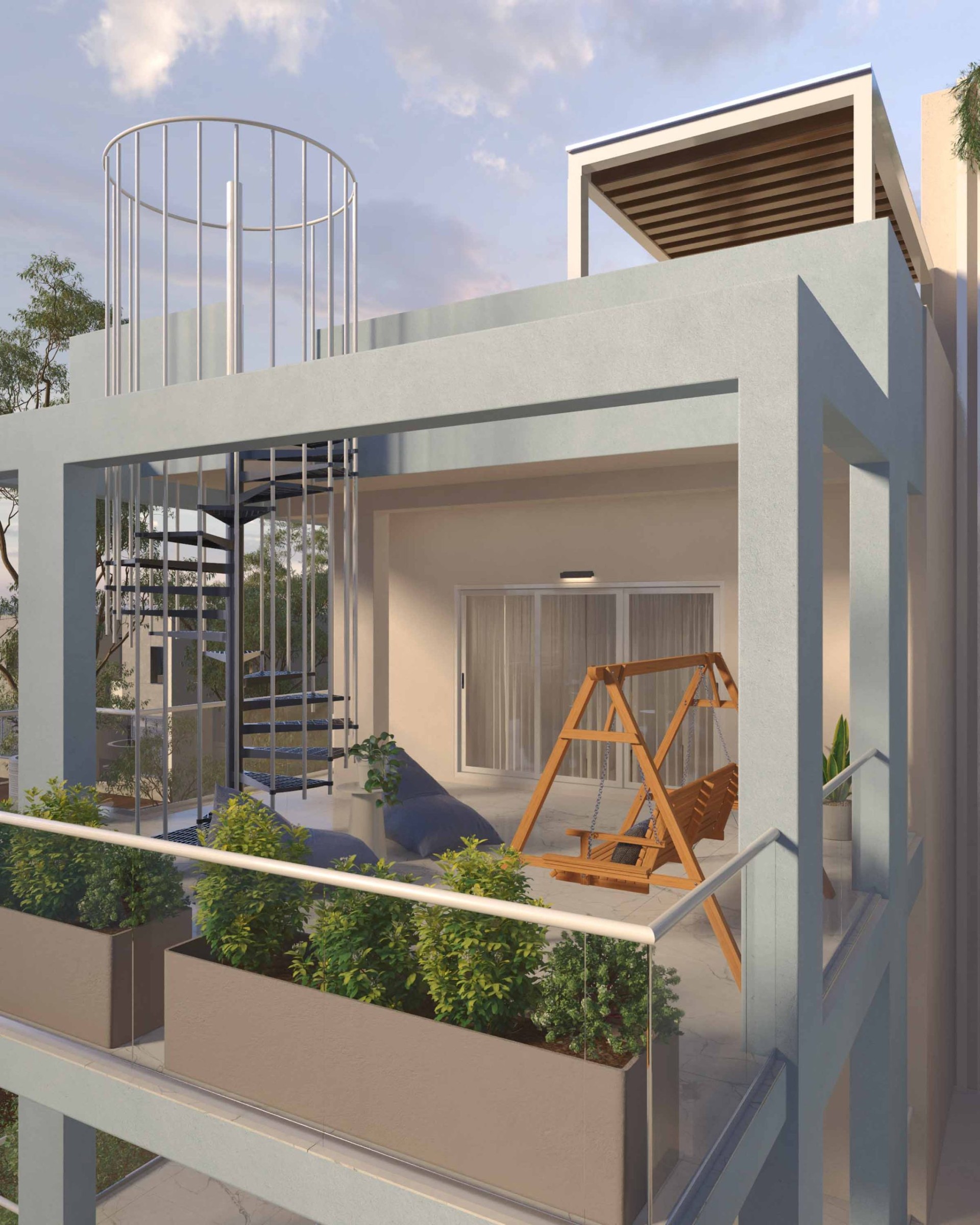 Архитектурная концепция проекта ориентирована на максимальную приватность и независимость. Лифт размещён в центральном ядре здания, благодаря чему апартаменты не имеют общих стен друг с другом. Такое планировочное решение обеспечивает высокий уровень звукоизоляции, хорошую инсоляцию и автономность каждого жилого пространства. Все апартаменты дополнены просторными балконами, индивидуальными парковочными местами и отдельными кладовыми.