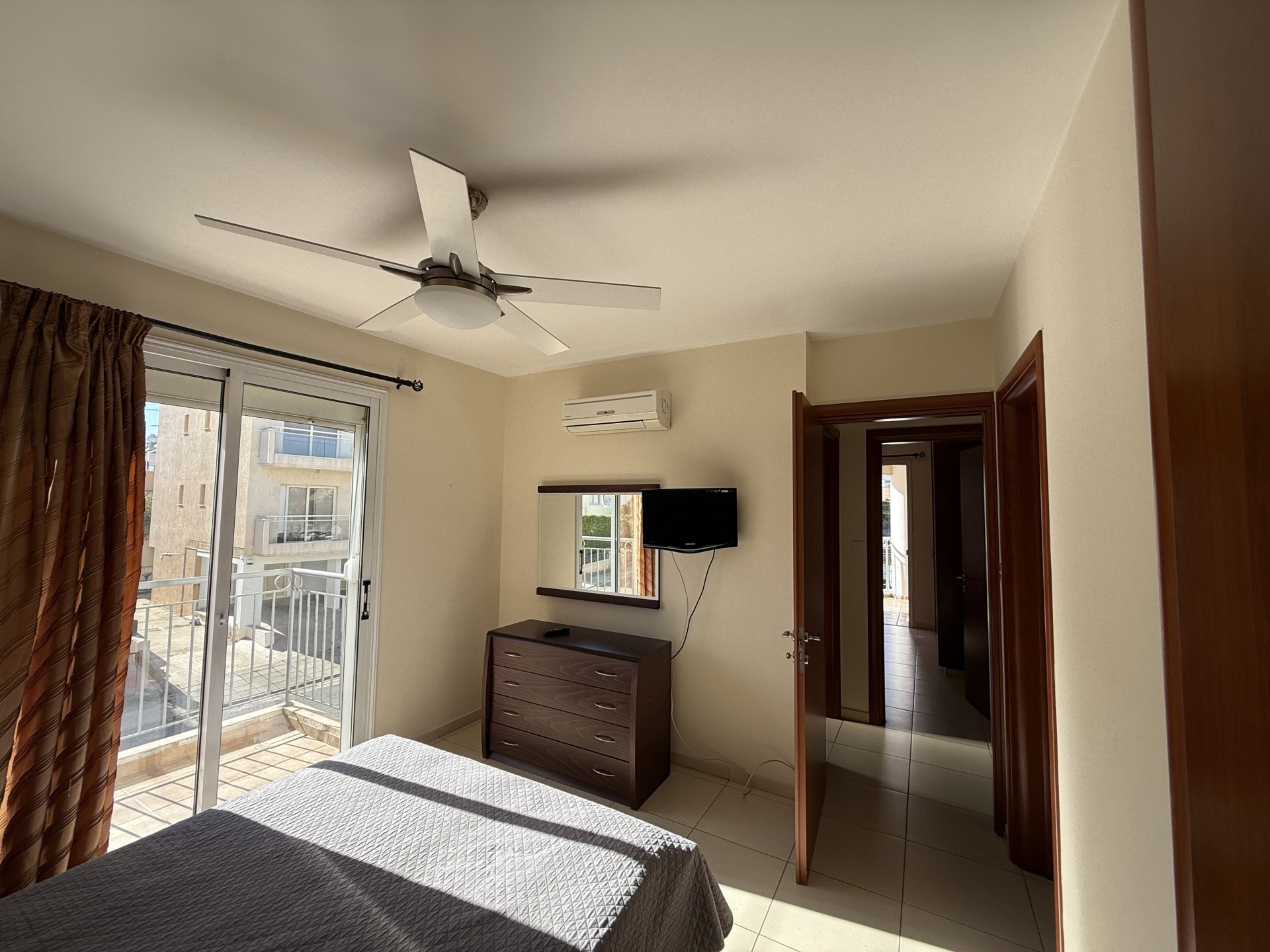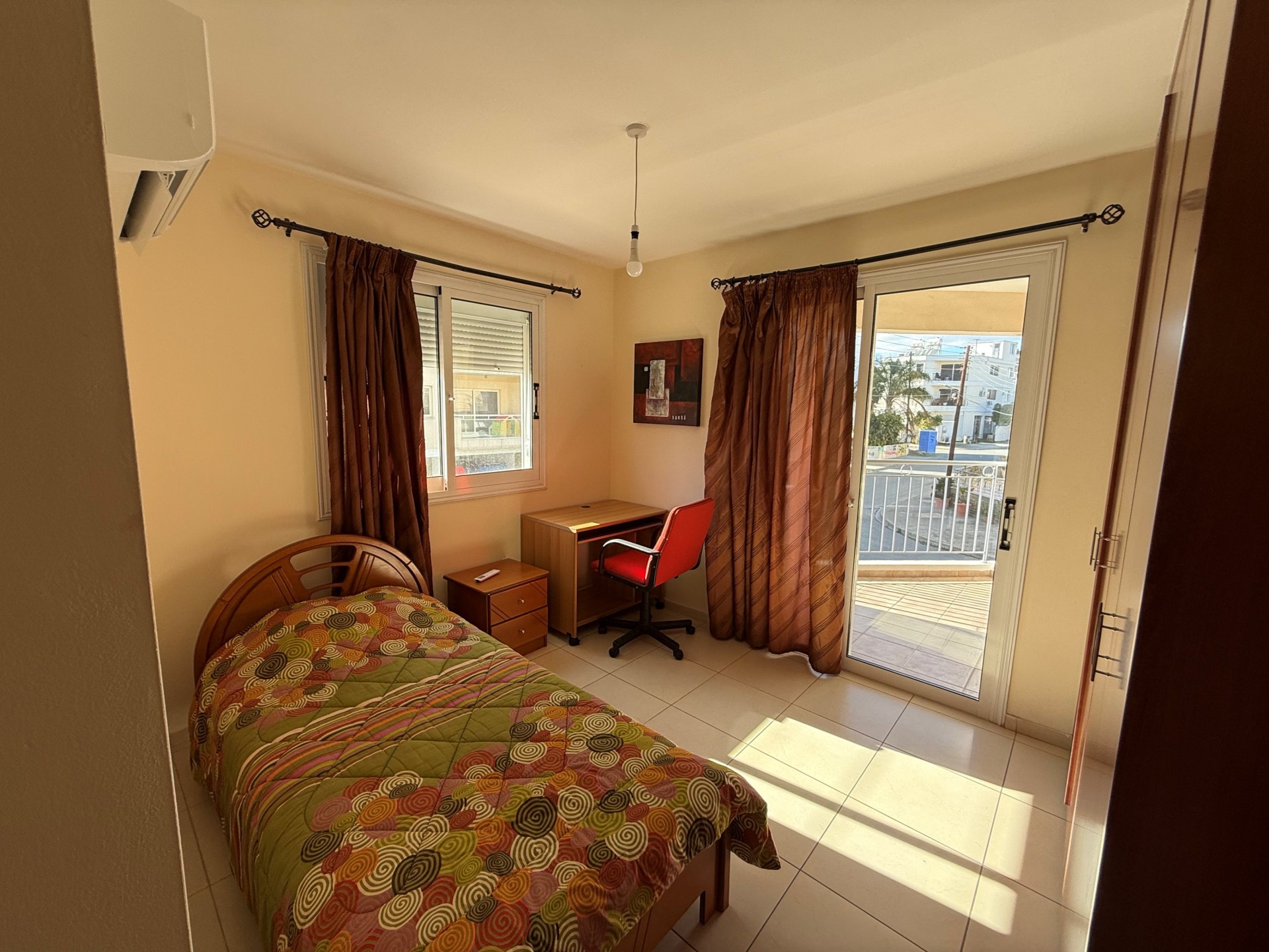 Эта квартира с тремя спальнями расположена в районе Меса Гейтония, Лимассол. Планировка включает открытую кухню и гостиную зону, три просторные спальни, а также две ванные комнаты с душем и ванной. Объект предлагается полностью меблированным и укомплектованным всей необходимой бытовой техникой. Общая площадь составляет 117 кв. м, из которых 94 кв. м — жилая площадь и 23 кв. м — крытые веранды. Квартира находится на первом этаже здания 2007 года постройки. Во всех комнатах установлены кондиционеры. В состав объекта также входят одно парковочное место и кладовая.