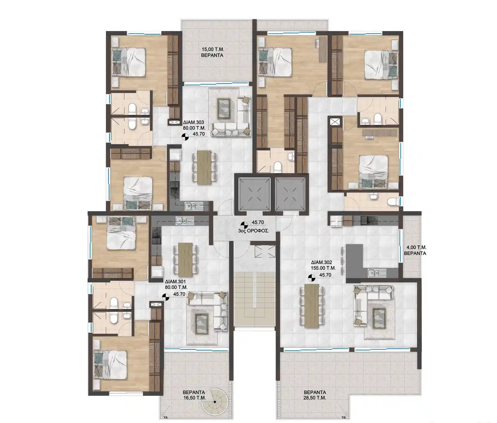B721 - 3-спальный пентхаус в Айос-Николаосе, Лимассол, рядом с мариной Лимассола