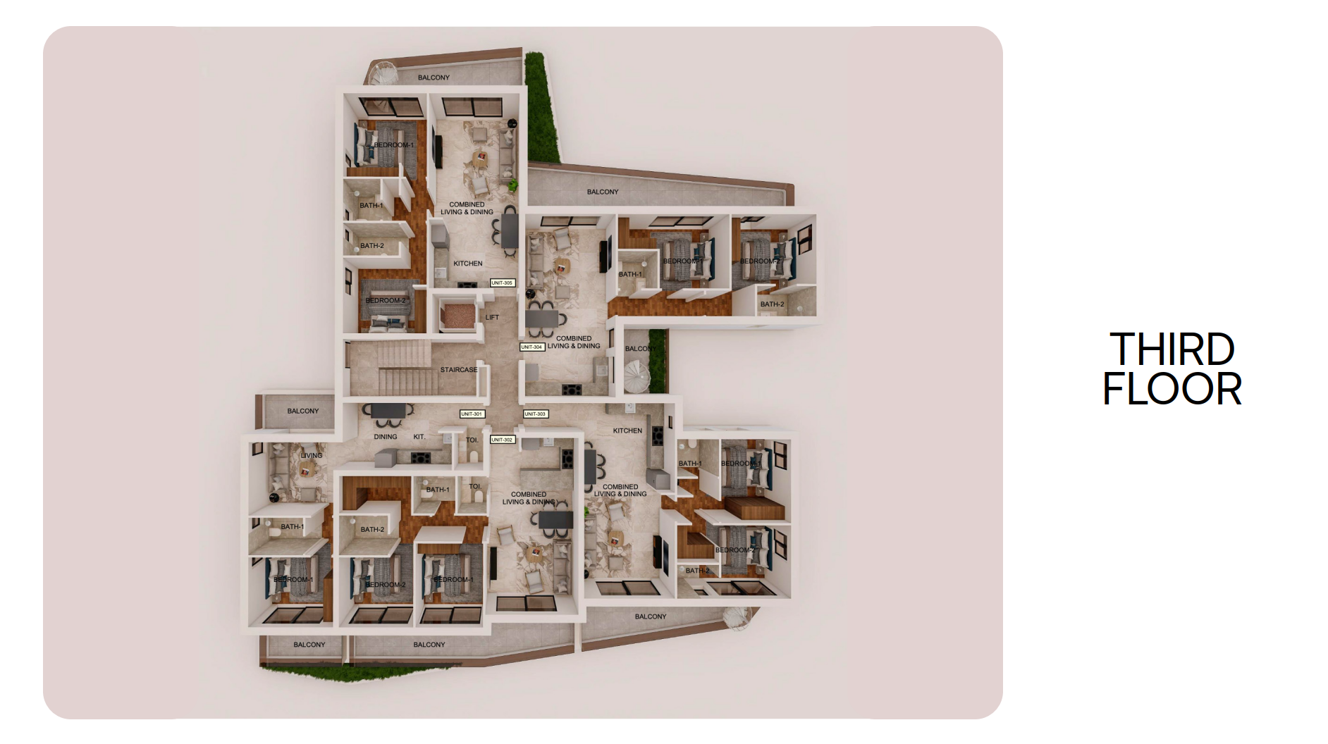 • Три пентхауса с 2 спальнями и садами на крыше