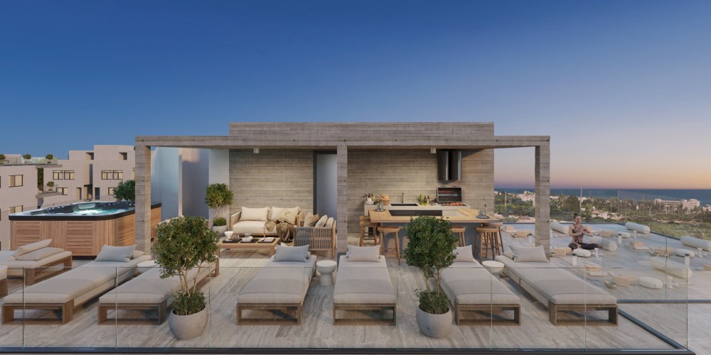Этот жилой комплекс выполнен в стиле бутик-отеля и предлагает изысканную жилую среду с общими зонами отдыха на благоустроенной крыше. Общее пространство включает зоны для релаксации и общения: отдельную площадку для йоги, зону барбекю для встреч с гостями, стильные шезлонги и просторное джакузи.