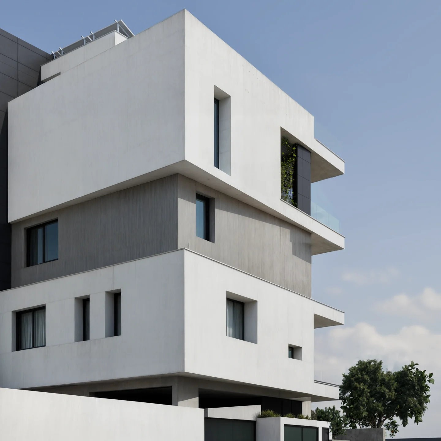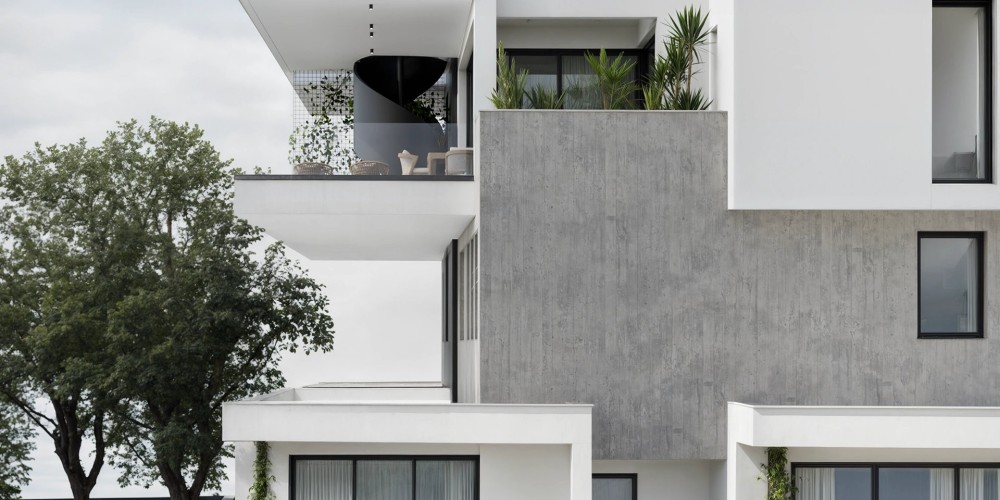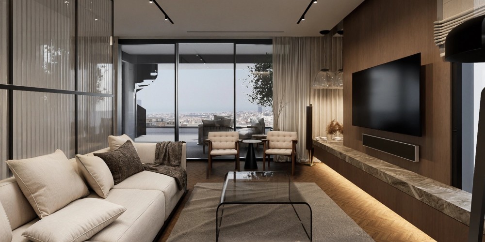 Проект выполнен в современном архитектурном стиле с акцентом на чистые линии и использование долговечных материалов, таких как открытый бетон и алюминиевые панели. Комплекс включает апартаменты с 1 и 2 спальнями, а также эксклюзивные двухуровневые пентхаусы с 3 спальнями.