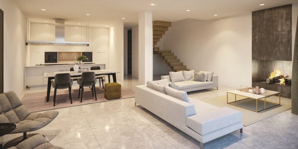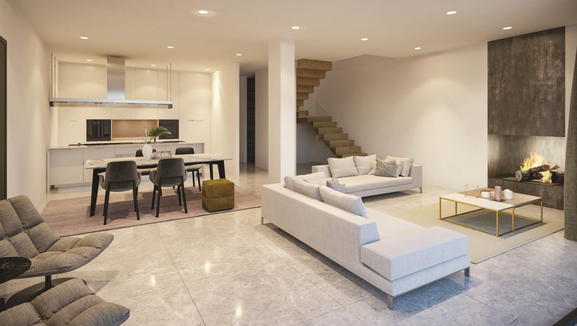 Вилла спроектирована с акцентом на комфорт и функциональность, что делает её подходящей как для постоянного проживания, так и для инвестиций. Интерьер включает светлое пространство открытой планировки, объединяющее гостиную и столовую зоны, с большими раздвижными дверями, ведущими на террасу и к частному бассейну.