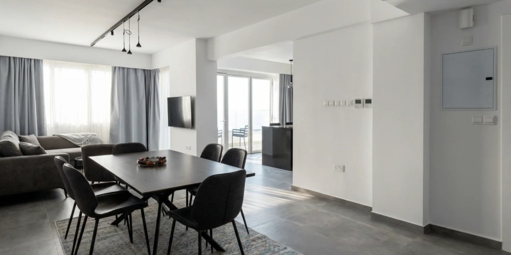 Объект передаётся в состоянии «под ключ» — полностью меблированным и оснащённым. Доступен как для покупки, так и для аренды по цене €3 200/месяц. В планировке предусмотрены просторная гостиная с выходом на веранду, две ванные комнаты и крытое парковочное место.