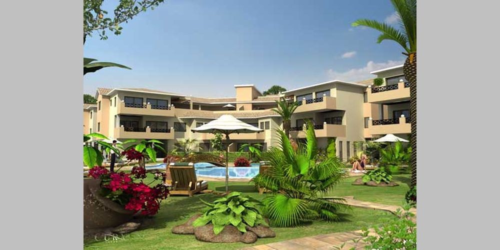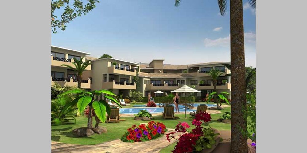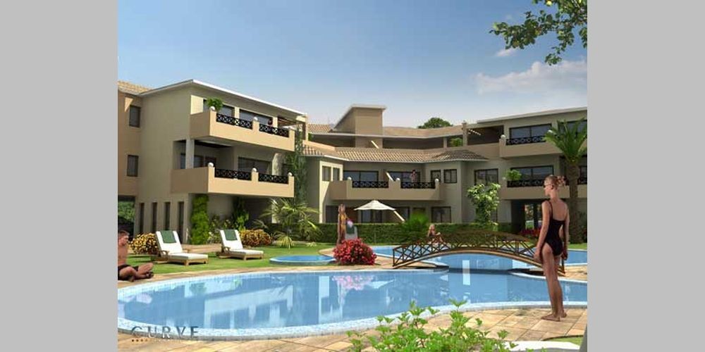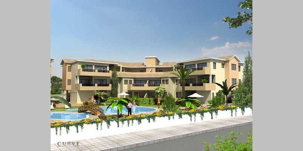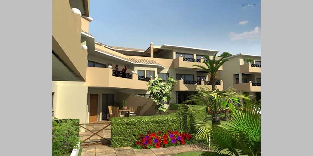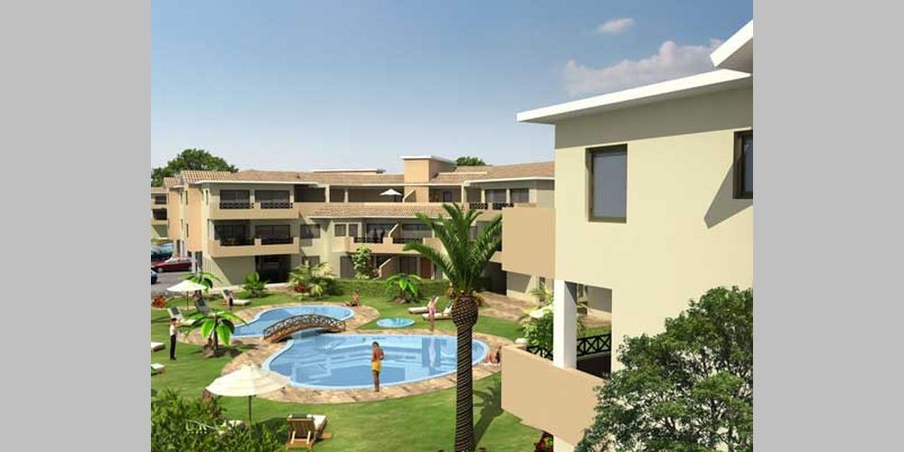 Комплекс недвижимости состоит из апартаментов в 4-ех трехэтажных блоках, расположенных вокруг 2-ух больших бассейнов.