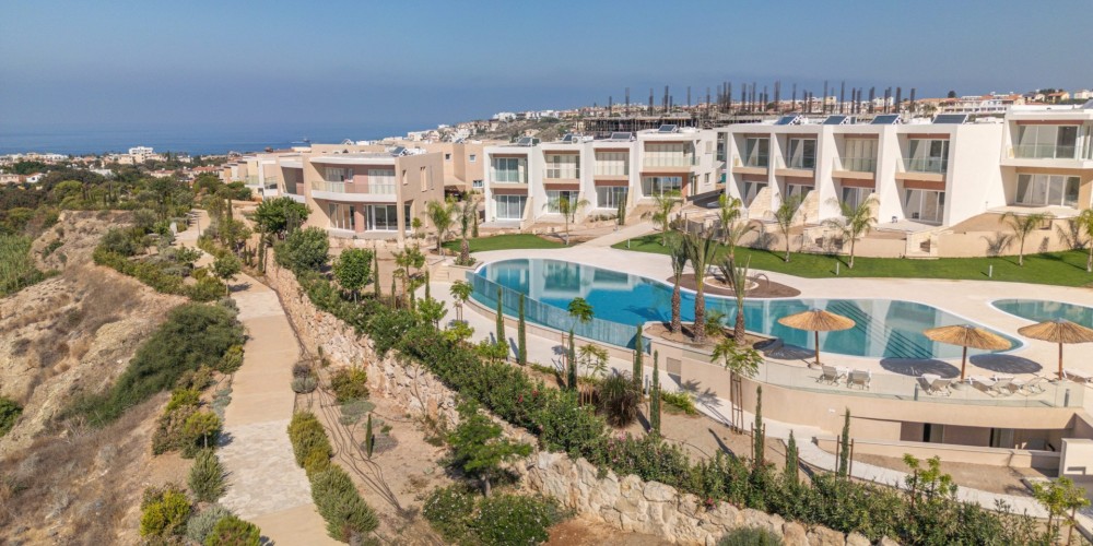 Расположение обеспечивает удобную связанность с городом: ближайший пляж — в 2 минутах, центр Пафоса и международная школа — в 5 минутах, главный торговый центр — в 6 минутах, набережная — в 9 минутах. До международного аэропорта Пафоса — 25 минут езды.