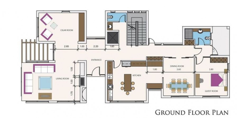 Отделка виллы выполнена с использованием дорогих сортов древесины, натурального камня и мрамора. Кухня оборудована итальянской гранитной столешницей.