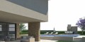 Широкая дорога ведет к гаражу с электрическими дверями и двумя парковочными местами, частному бассейну с видом на море и площадке барбекю на открытой веранде.