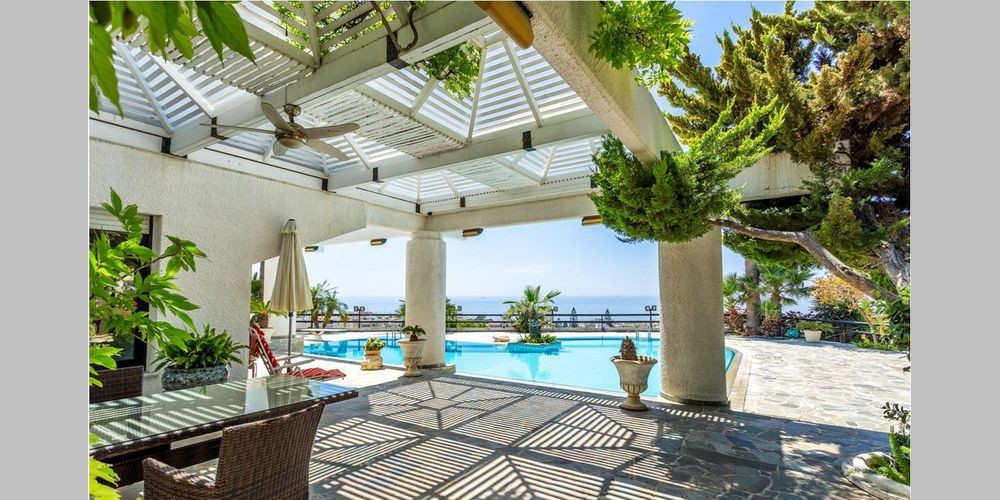 Эта роскошная вилла с панорамным видом на море, располагается на горе в престижном районе Агиос Тихонас, недалеко от основной трассы Лимассола. Это всего в 10 минутах на машине до центра Лимассола и в 2 минутах от пляжа.