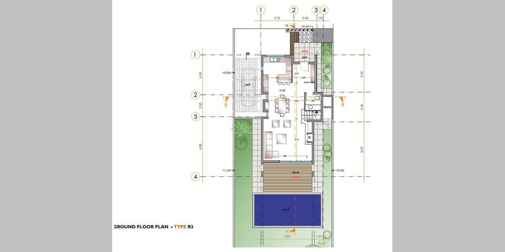 Комплекс современных вилл расположен недалеко от главной кольцевой дорожной развязки, входящей в город, предоставляя удобство для повседневной деятельности. Виллы окружены зеленым пространством и панорамным видом на Средиземное море и город Пафос. В каждом доме есть просторный первый этаж открытой планировки с гостиной / столовой и итальянской кухней с баром для завтрака. Современная лестница ведет на верхний этаж с тремя или четырьмя спальнями и главной ванной комнатой. В главной спальне есть душевая кабина и балкон. Лестница ведет к саду на крыше с панорамным видом на море.
