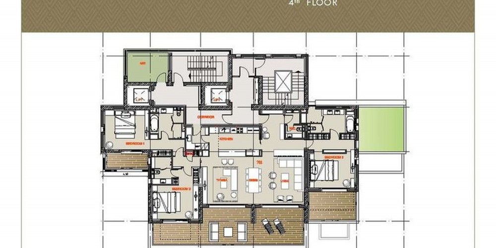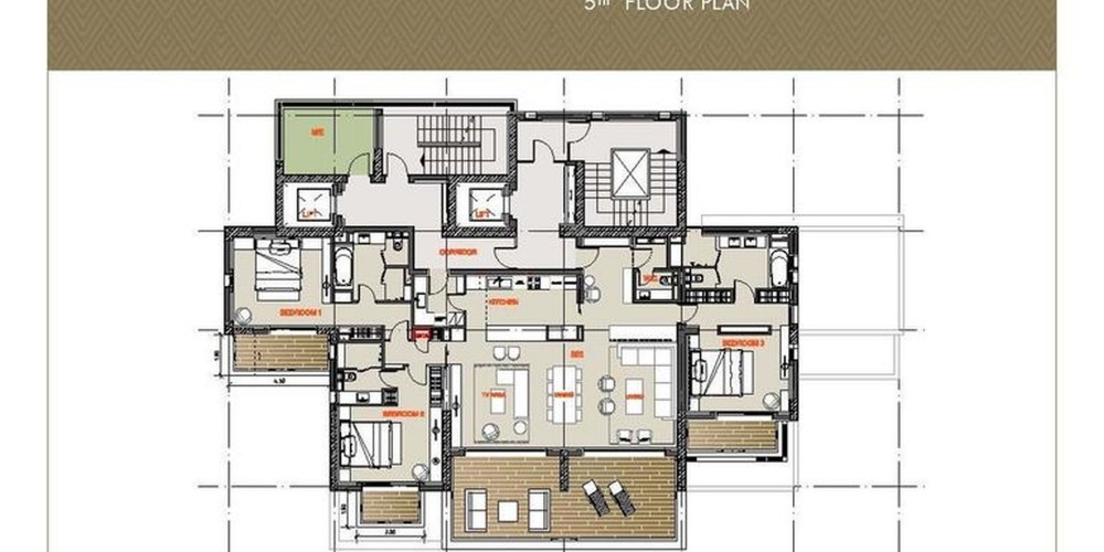 В составе открытой веранды терраса на крыше с бассейном 142 кв.м.