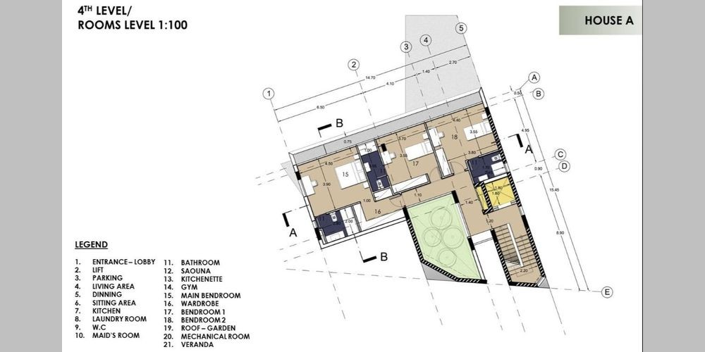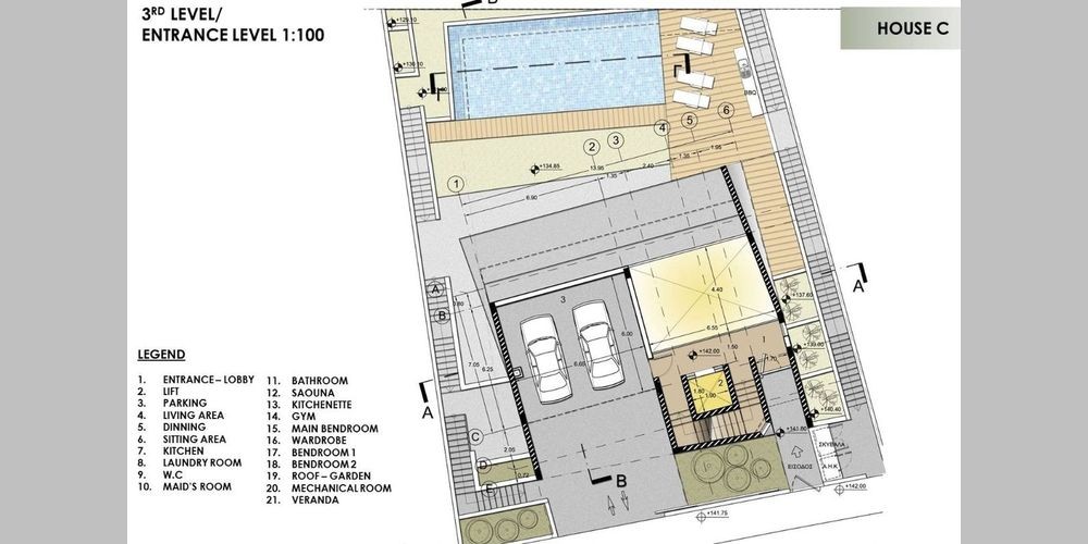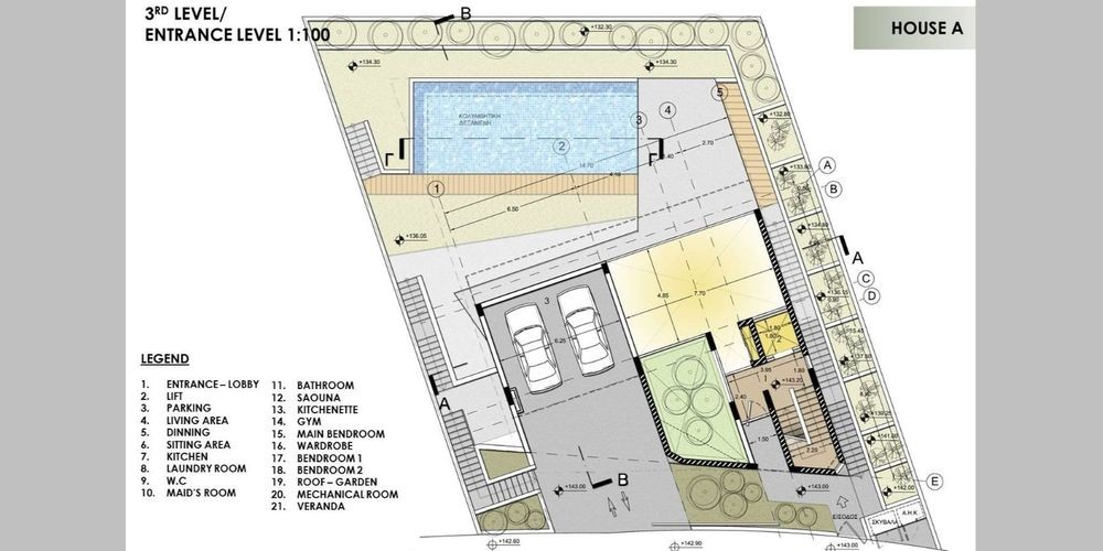 Три современных виллы расположены с видом на залив Лимассола. Виллы состоят из четырех уровней. Дизайн вилл основан на принципах биоклиматической архитектуры и жизнеспособного развития, обеспечивающих современный дизайн. Спальни расположены на более высоком уровне вилл, а зона отдыха, кухня и другие комнаты находятся на нижнем уровне. Фитнес зал, раздевалки, сауна и горничная расположены на нижнем уровне, который является уровнем внутреннего двора. Крыша вилл имеет сад, где можно наслаждаться видами Лимассола.