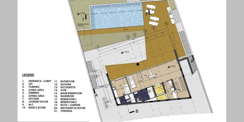 Три современных виллы расположены с видом на залив Лимассола. Виллы состоят из четырех уровней. Дизайн вилл основан на принципах биоклиматической архитектуры и жизнеспособного развития, обеспечивающих современный дизайн. Спальни расположены на более высоком уровне вилл, а зона отдыха, кухня и другие комнаты находятся на нижнем уровне. Фитнес зал, раздевал...