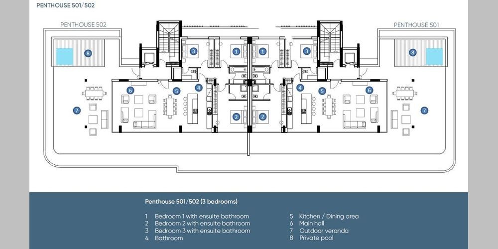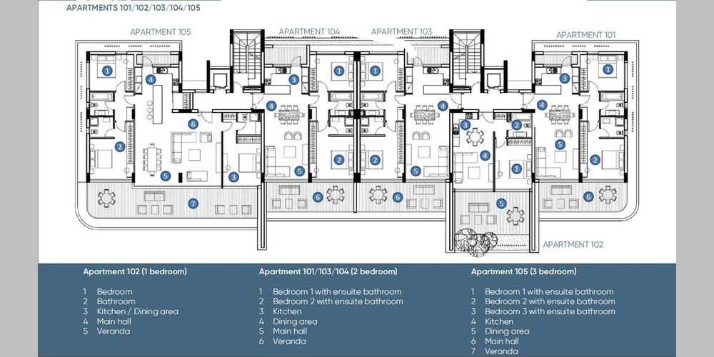 Это жилое здание состоит из 5 квартир на каждом этаже и 2 пентхаусов на крыше. Каждая квартира имеет доступ к общему бассейну и тренажерному залу. Каждой квартире принадлежит парковочное место, есть склад и в подвале. Здание расположено в Айя-Филе, в жилом районе и имеет прямой доступ к шоссе, легкий доступ к центру города и в 15 минутах езды от всех необходимых удобств.