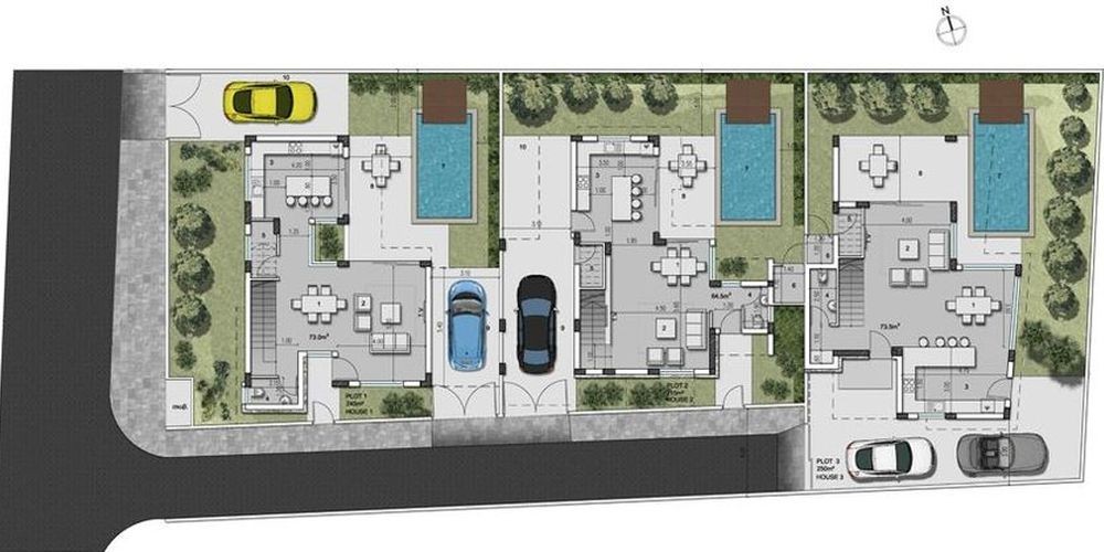 Эти 3 отдельно стоящие виллы в закрытом комплексе находятся всего в 750 метрах от моря. Они имеют элегантный дизайн и обеспечивают лучший современный стиль жизни.