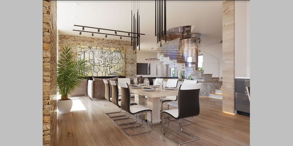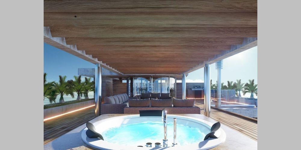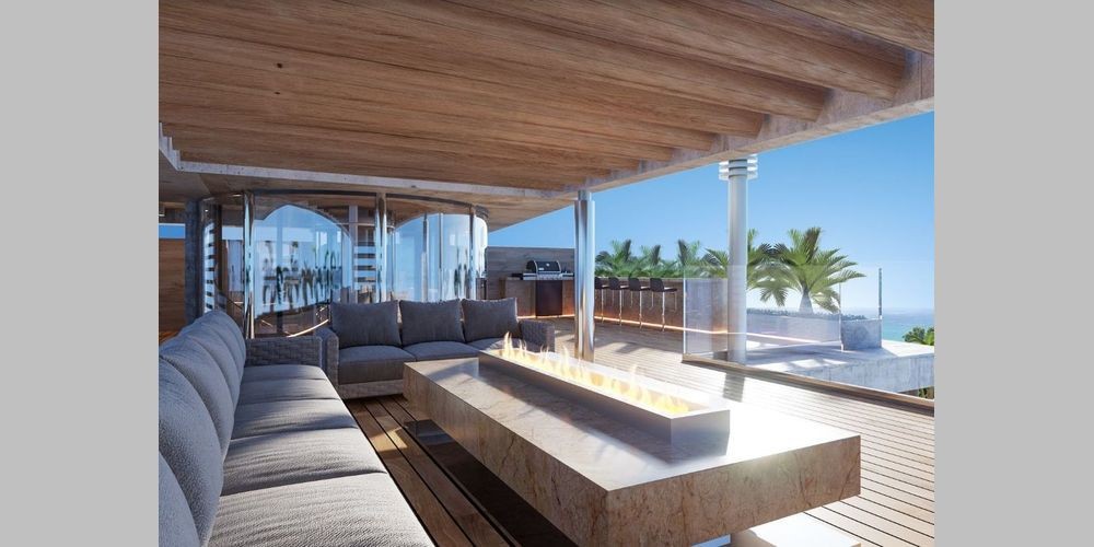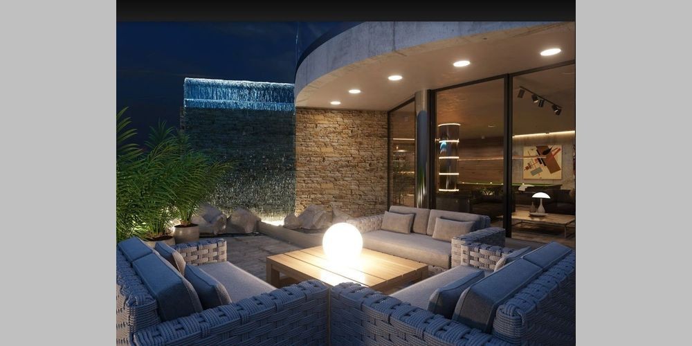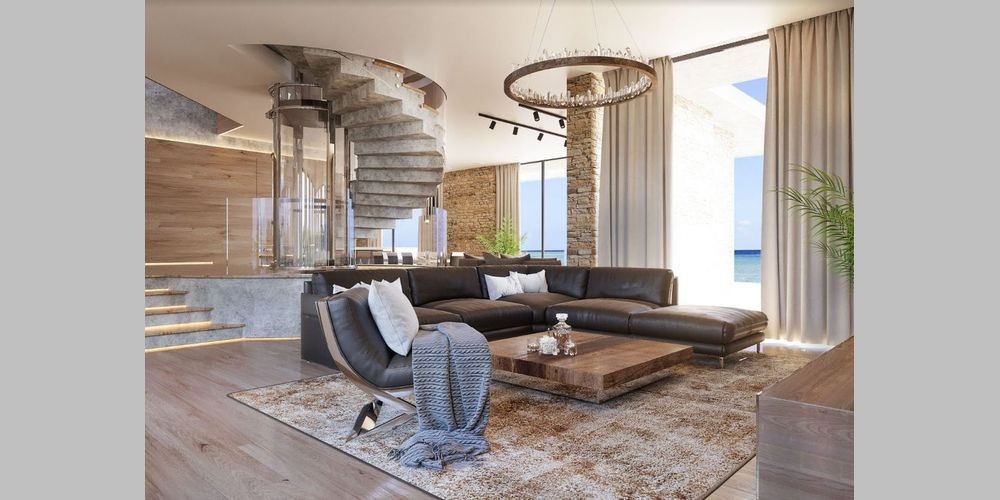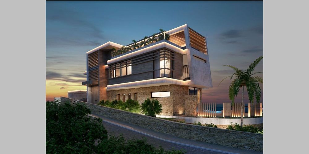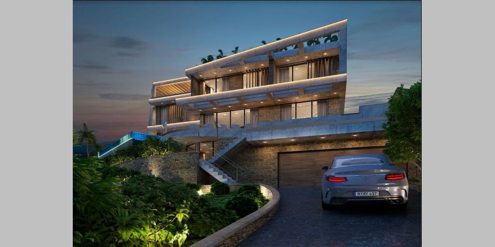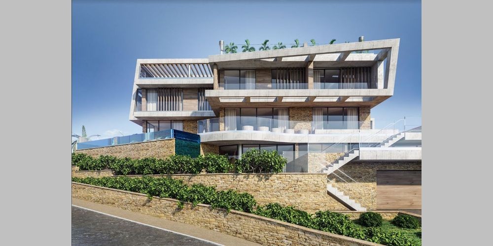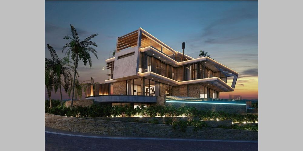 Эта роскошная вилла — произведение современной архитектуры, исполненное в стиле минимализм с элементами хайтека. Вилла находится на склоне горы с великолепным видом на средиземное море и город Лимассол. Расположение виллы имеет все достоинства приватного загородного особняка с шаговой доступностью к городской инфраструктуре. Площадь участка 1065м², имеет ярко выраженный рельеф, задающий тон в архитектурном решении объемно-планировочного пространства здания и прилегающей к нему территории. Общая площадь виллы, включая подвал и гараж составляет 753м². Дополнительно имеются зоны барбекю с барной стойкой, место отдыха с джакузи и камин — очаг на эксплуатируемой кровле в 220м², с которой открывается панорамный вид на город и лазурное море. Вилла имеет 4 уровня, которые изящно связаны центральным композиционным ядром — воздушной винтовой лестницей и лифтом.