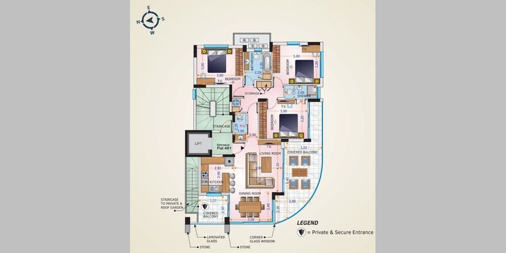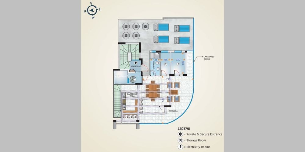 Это жилое здание расположено недалеко от Американской академии. Он состоит из четырех этажей и квартир с тремя спальнями и двумя ванными комнатами - все с просторными и современными жилыми зонами. Все квартиры спроектированы так, чтобы иметь просторные спальни в месте с балконами, включая ванные комнаты и гардеробные. Квартиры на четвертом этаже обеспечивают оптимальную конфиденциальность и имеют частные просторные крытые сады с видом на центр города Ларнаки. На каждую квартиру есть одна парковка и одна большая кладовая. Этот жилой район спокойный и ориентирован для семейного проживания. Проект находится недалеко от пляжа, центра города и частных/государственных школ.
