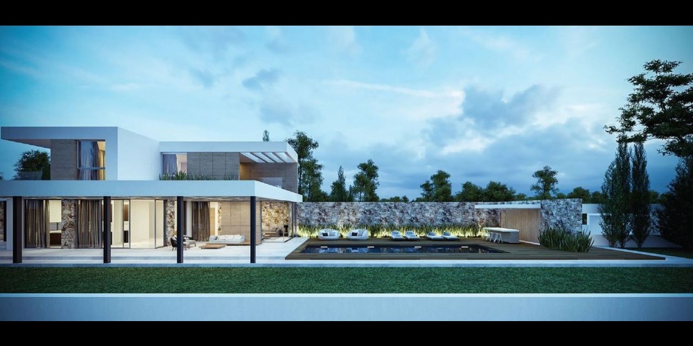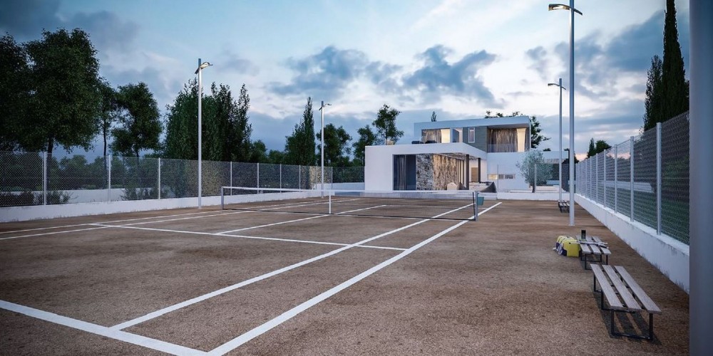 Эта вилла современного стиля расположена всего в нескольких сотнях метров от моря. Она состоит из 2 этажей и имеет 4 спальни, в двух из которых есть ванные комнаты. Есть гараж, крытые парковки для гостей. Снаружи есть бассейн с местом для загорания, раздевалки и душ. Вилла окружена садами. По запросу за дополнительную плату можно спроектировать теннисный корт. Есть также крытые и открытые веранды. В 1 частной веранде есть джакузи.