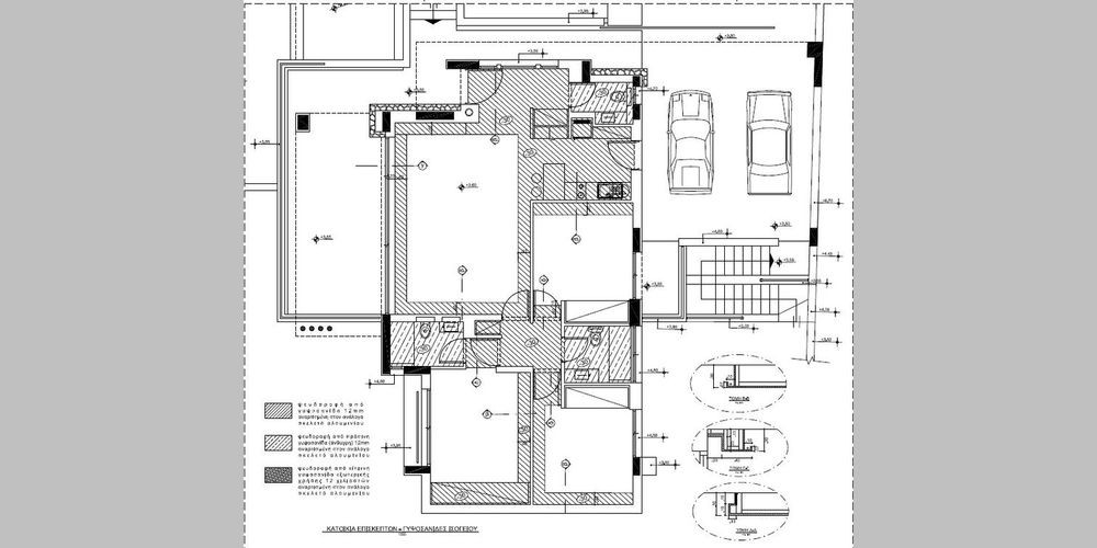 Нижний уровень: Веранда над бассейном и садом, 1 спальня с ванной комнатой со встроенным шкафом и душем/туалетом, 2 дополнительные спальни, 1 душ/туалет, 1 небольшая кладовая, 1 кухня и 1 гостиная с камином. Первый уровень: прихожая, гостиная, кухня, гостевой туалет, подвал и крытая веранда с видом на бассейн и сад. Дополнительно есть складская комната и комната для разных целей. На этом уровне также есть крытая парковка для двух автомобилей. Верхний уровень: 3 большие спальни со встроенными шкафами и отдельными ванными комнатами/туалетом. Коридор ведет к смежному зданию, спроектированному как парковочное место для двух автомобилей и двух мотоциклов. Существует также дом для гостей. Снаружи есть теннисный корт с переодевалками, туалетами, кладовой и небольшой кухней. Рядом с теннисным кортом есть не большое здание, используемое в качестве дополнительной парковочной площадки для двух автомобилей. Автоматизированные ворота и сплит-системы кондиционеров. Зрелый сад был спроектирован обращая внимание на детали.