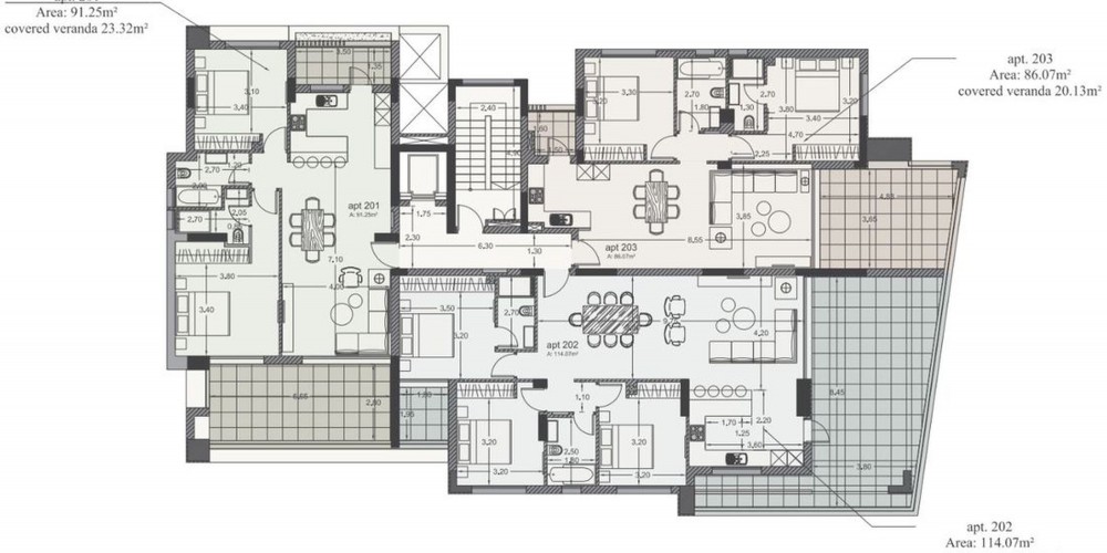 Этот закрытый комплекс расположен всего в 500 метрах от песчаных пляжей и лучших ресторанов недалеко от моря, в нескольких минутах ходьбы от всех необходимых удобств, включая магазины, пекарни, аптеки, кафе. Комплекс состоит из 4-этажного здания с десятью квартир с 1, 2, 3 спальнями и двумя пентхаусами с просторными частными террасами и бассейнами на крыше и общей зоной.
