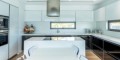 Светлая основная гостиная с камином, столовая и главная кухня с выходом в большой крытый гараж на 4 авто, гостевой санузел. В юго-западном крыле дома также расположена просторная крытая веранда с великолепным видом на побережье и горы.