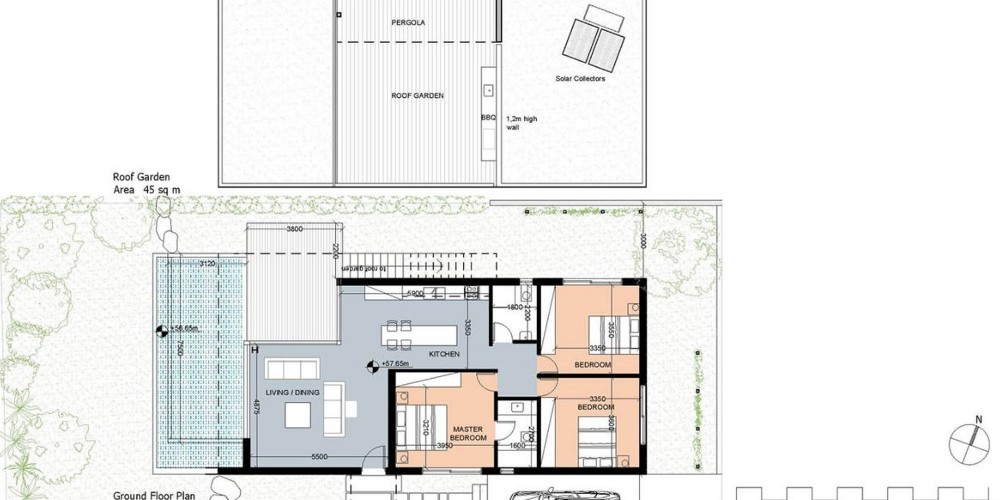 Проект предлагает уединение, пространство и удобства в пешей доступности. Дизайн каждого дома продуман обращая внимание на качество и низкое энергопотребление. Современные материалы и цвета выбраны, чтобы дополнить расположение с видом на море. Дома с 3 спальнями предлагают просторную планировку, частные открытые пространства с бассейнами и садами на крыш...