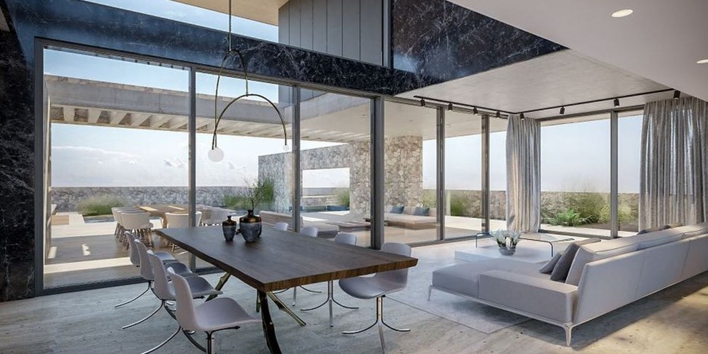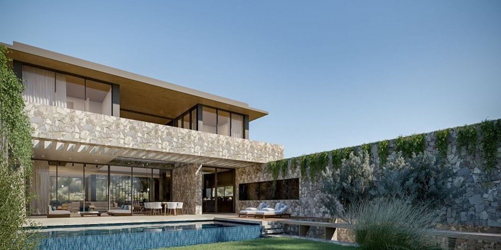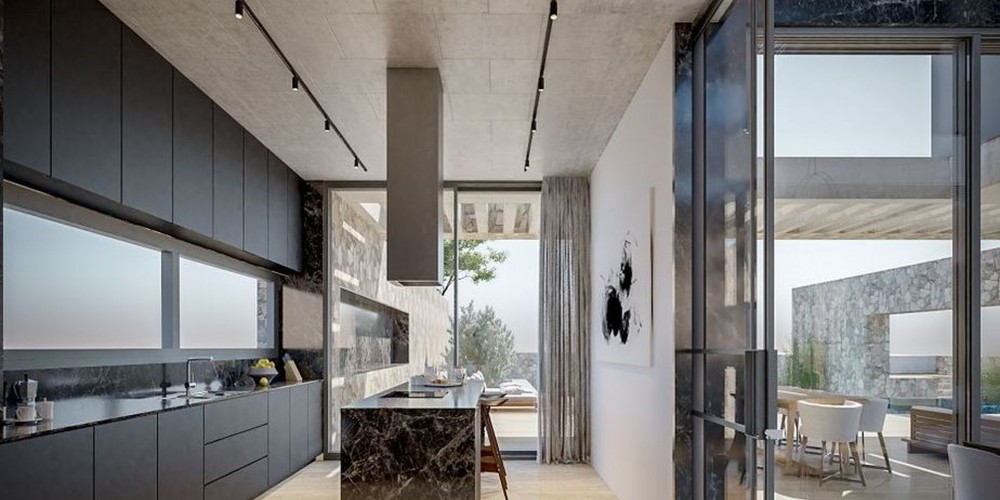 Расположенные между пляжем и скульптурным парком, эти виллы с 5 спальнями находятся под влиянием дикой природной среды и грубых фактур камней, в результате чего виллы приобретают современный, но роскошный характер, который гармонично сочетается с окружающей средой. Проект ориентирован на юг, с видами на море. Дизайн соответствует идеи концепции: меньше это больше, богатство пространства благодаря материалам и их составу придают этим виллам аутентичность. Выбранные материалы аутентичной текстуры, приятны как для глаз, так и для прикосновения, особенно на кухне. Окна от пола до потолка пропускают свет внутрь, делая пространство ярче и создавая более живую атмосферу, а также открывают прекрасный вид на море.