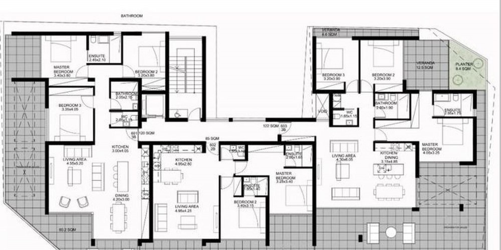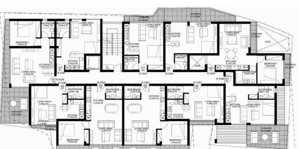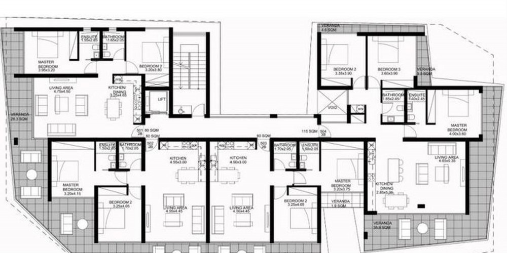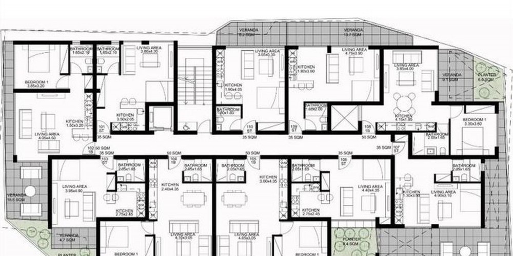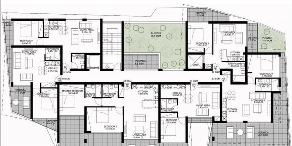 Это новая застройка, состоящая из 6-этажного здания, в котором расположены современные студии, 1, 2 и 3-комнатные квартиры, с жилой площадью от 35 кв. до 122 кв. На шестом этаже два эксклюзивных пентхауса с 3 спальнями и один с 2 спальнями с видом на море и большой верандой с джакузи.